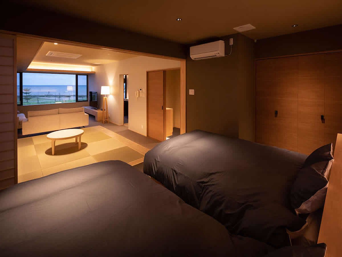 ■Area ・Convenience store: About 3 minutes by car ・Supermarket: About 10 minutes by car ・Nearest station: About 15 minutes by car ■Facilities ・Wooden deck ・Bar Lounge ・Drink corner (available 24 hours) At Imigre, you can enjoy all beverages at the drink corner for free during your stay. In addition, from check-in until 21:00, draft beer, sparkling wine and cocktails are also free to drink. * Please note that you cannot order these drinks if you check in at 21:00. ◯ Drinks Budweiser or Heineken, wine, whiskey, shochu, plum wine, sake, lemon sour, soft drinks, non-alcoholic beer ◯ Menus available to order until 21:00 Draft beer, sparkling wine, local sake, cocktails, non-alcoholic cocktails * You can also bring your drinks to your room. * Bottles of wine are available for a separate charge. * Please enjoy as much as you can drink during your stay. ■Meals *HafH plans are 'Room Only', so no meals are included. ■Rooms ーー【Suite】ーー The Simmons mattress bed 140 cm wide × 2. A raised tatami-floored seating area and bathroom with sea view. Equipped with a bath toilet, spacious sofa, air conditioning, refrigerator(empty), and wireless LAN. Corner room. Sea view. ーー【Glamping Suite "Natural"】ーー A space that pursues a natural space, with wood-based interiors. Good view of nature! Equipped with air conditioning, 2 double beds, refrigerator, outlet, private unit bath! ーー【Standard Double】ーー The Simmons mattress bed 140cm wide × 1. Superb views of Toyama Bay and the Tateyama mountain range from the large windows. Equipped with a bath and toilet, air conditioning, refrigerator(empty), and wireless LAN. Sea view. *Please note that smoking is not permitted in the room. ■Notes ・Please note that we are not responsible for any accidents, theft, or loss in the building. ・Those who have been a nuisance in the building or other guests may be asked to leave. ・We will promptly report to the police in the event of theft or damage to equipment or property. ・In the event of damage, loss or contamination of equipment or fixtures in the hotel, you will be liable for the equivalent value of the item. ・Pets are not allowed. ・Please use your mobile phone so as not to disturb other guests. ・For inquiries regarding facilities and services, please check the official hotel website or contact the hotel directly.Rooms