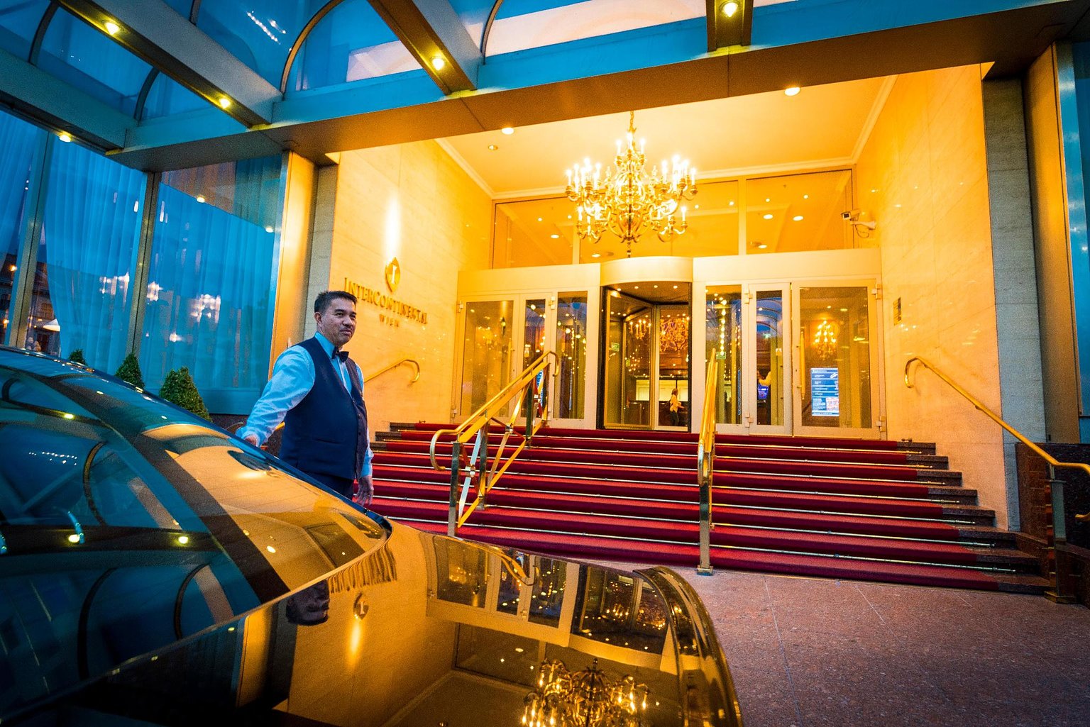 Hotel information is subject to change. For accurate details, please check the official website of the hotel. The InterContinental Vienna hotel places you moments away from the world-renowned Vienna State Opera and stylish shopping on pedestrianised Karntner Strasse. Behind its functionalist exterior, the hotel's magnificent wood-panelled lobby is hung with chandeliers, while our grand ballroom is ideal for hosting elegant events. You can also work out in the state-of-the-art Fitness Center, experience typical Viennese coffee house culture, or savor classic cocktails in the refined Intermezzo Bar.