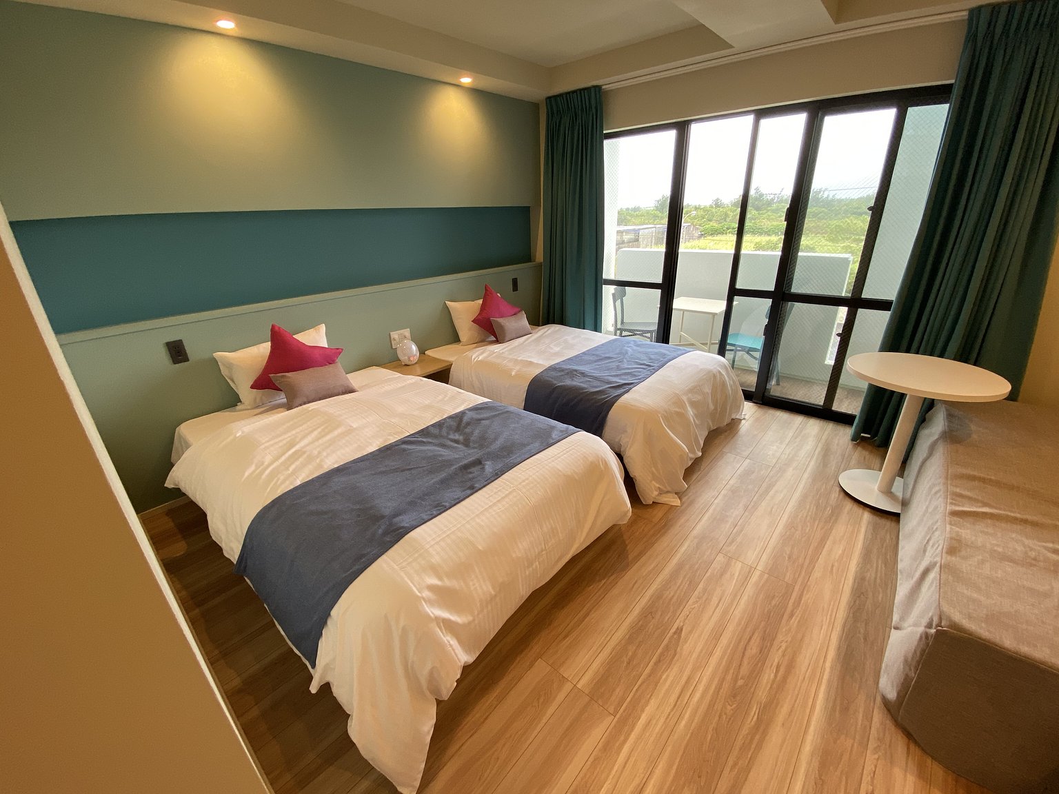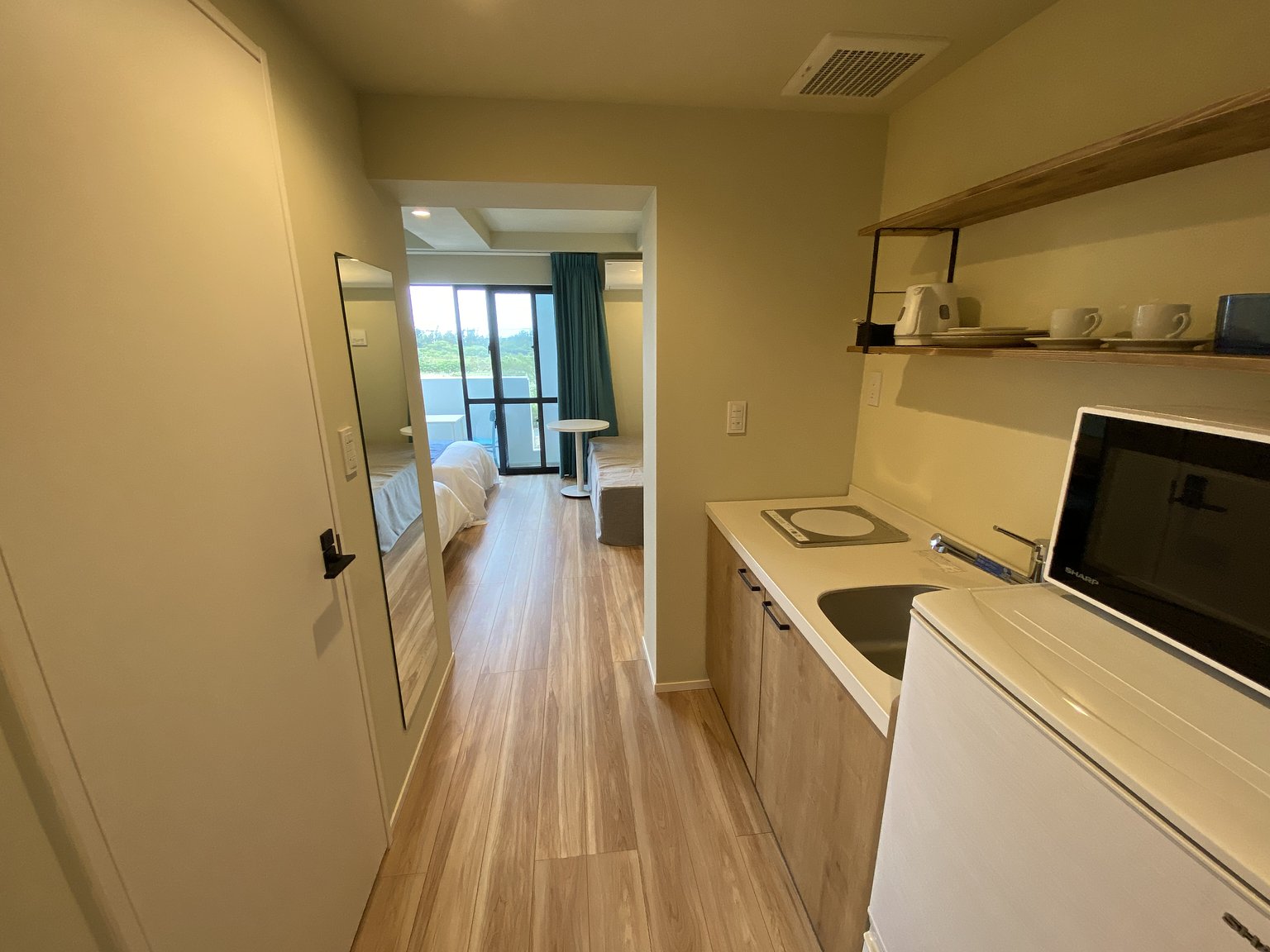In December 2020, an unmanned casual resort hotel was born in a location close to Miyako Shimojishima Airport and where you can enjoy Irabu Island and Shimoji Island more! A 12-minute walk to the superb view of "Toguchi Beach". Ideal for diving, fishing, business and co-working, you can enjoy a casual stay in a spacious 30 m² room. There is a washing machine, dryer, refrigerator, microwave oven, and mini kitchen, so you can stay for a long time. The maximum room is 3 people (preschoolers can share a bed for free). Parking is free. There is no room cleaning during your stay. You can freely bring amenities and towels to be changed from the library space on the 1st floor. Vending machines (drinking water, alcohol, sweets) and ice machines are installed in the building. For meals, please use "Shokusaitei Mutsumi" in front of the hotel. https://www.instagram.com/mutsumi0980797137/?hl=ja It is a breakfast venue, but it is open as a set meal for lunch and a tavern at night. It is closed on Mondays during the day and evening. Please feel free to use it.Rooms