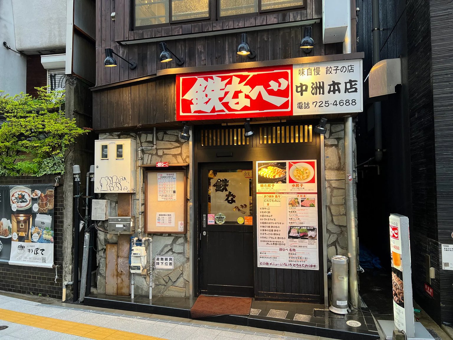 There are many delicious restaurants around Nakasu in Hakata, but due to a typhoon hitting on the day of my stay, many shops closed early... I checked with "Tetsunabe Nakasu Honten," which is about a one-minute walk from the hotel, to see if they were open, and they said, "We will be open until around 8:00 PM," so I decided to go for dinner.