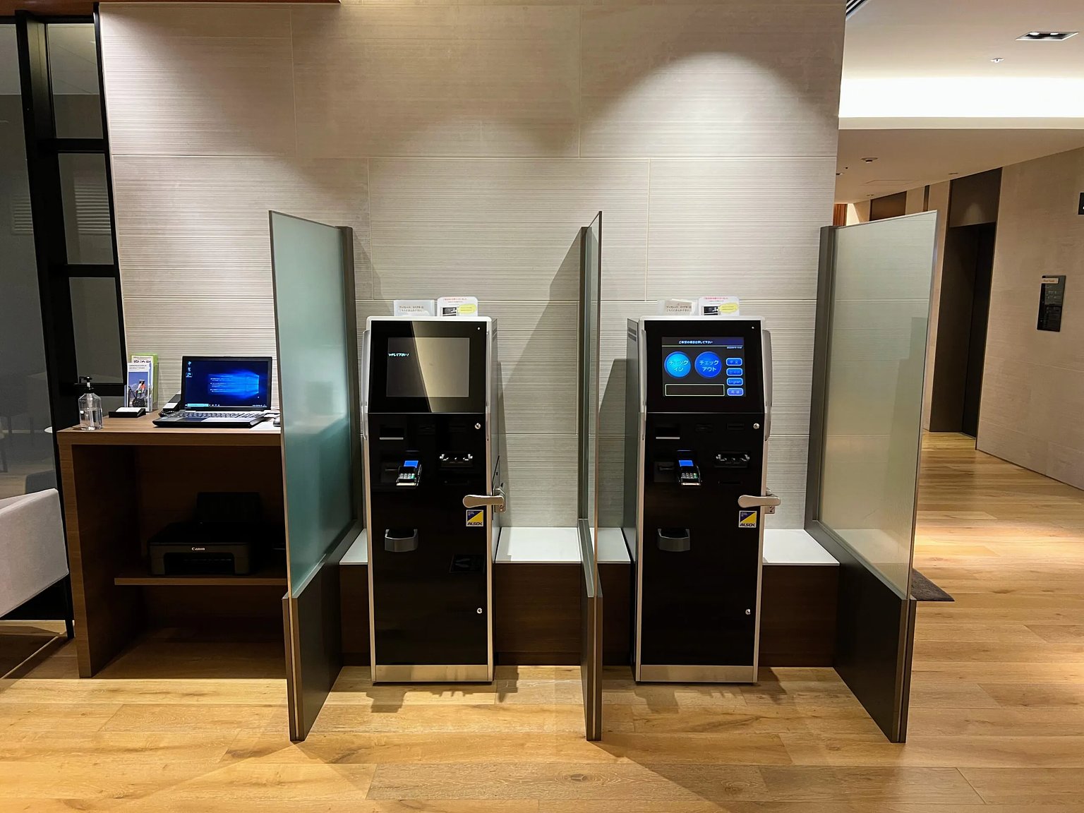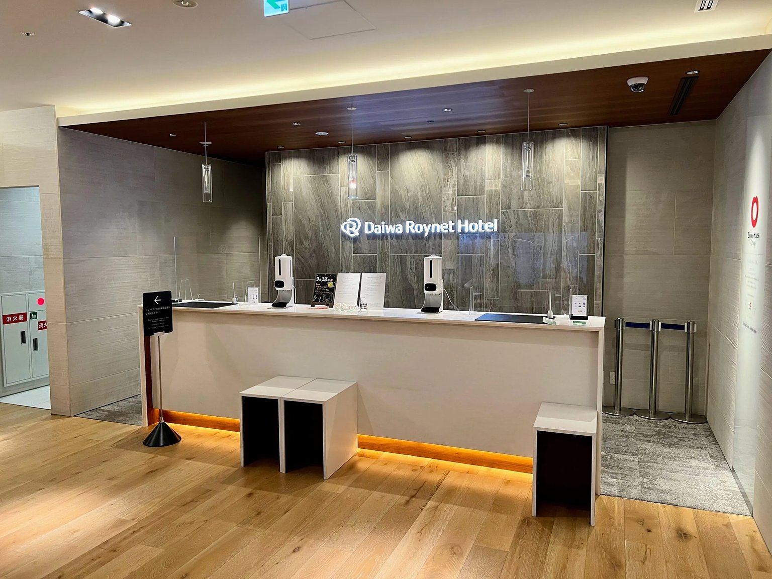 The front desk is on the 2nd floor of the building. The front desk is similar in design to other Daiwa Roynet hotels, and there were two self-check-in machines available.