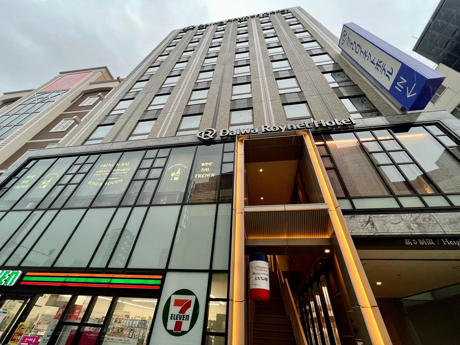 From Exit 1 of Nakasu-Kawabata Station, it’s about a 10-minute walk. On the day of my stay, there was a direct hit by the typhoon, and with the strong wind and rain outside, I thought it would be tough to walk for 10 minutes from the station, so I took a taxi from the taxi stand at Hakata Station.