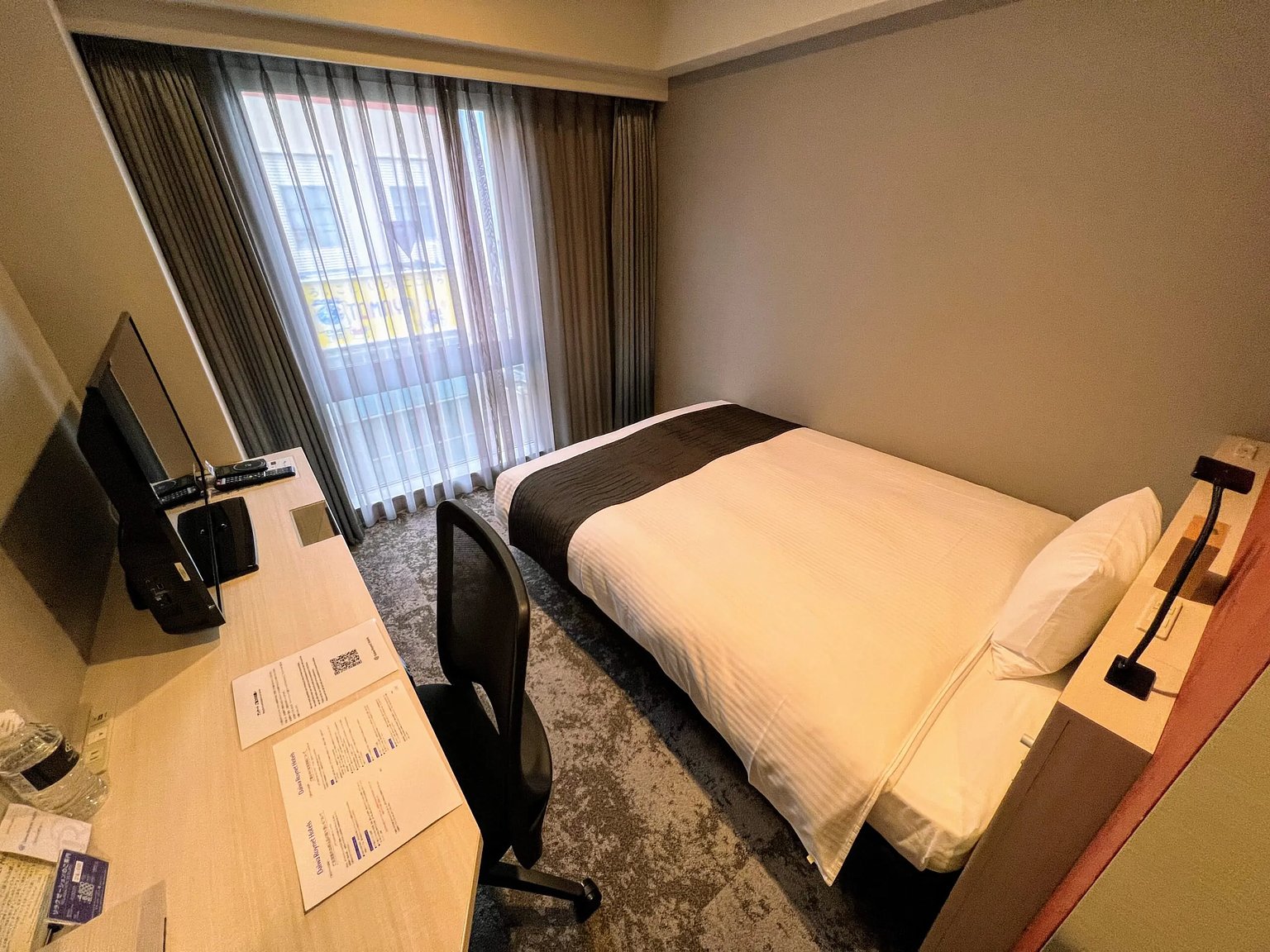 The room I stayed in was a basic standard room. It was a very simple room for one person. Basic amenities like a TV, refrigerator, electric kettle, safe, hairdryer, cups, and air purifier were all provided.
