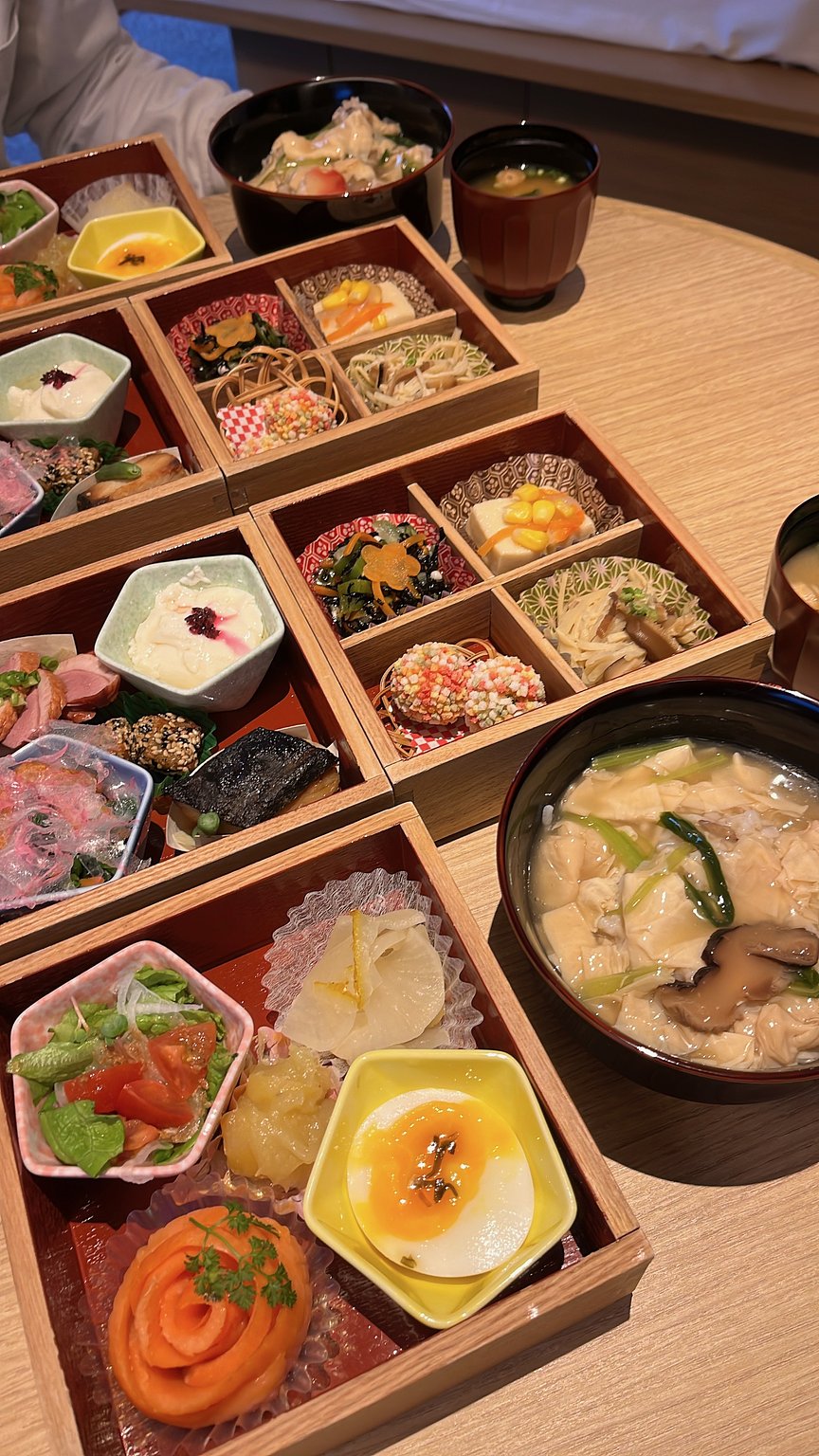 Breakfast is available for an additional fee, and you can request catering to your room. You can choose the popular egg sandwich from a long-established shop or a kaiseki bento from a nearby restaurant; I chose the kaiseki bento, which was truly delicious. If you stay here, this is something you should absolutely order.