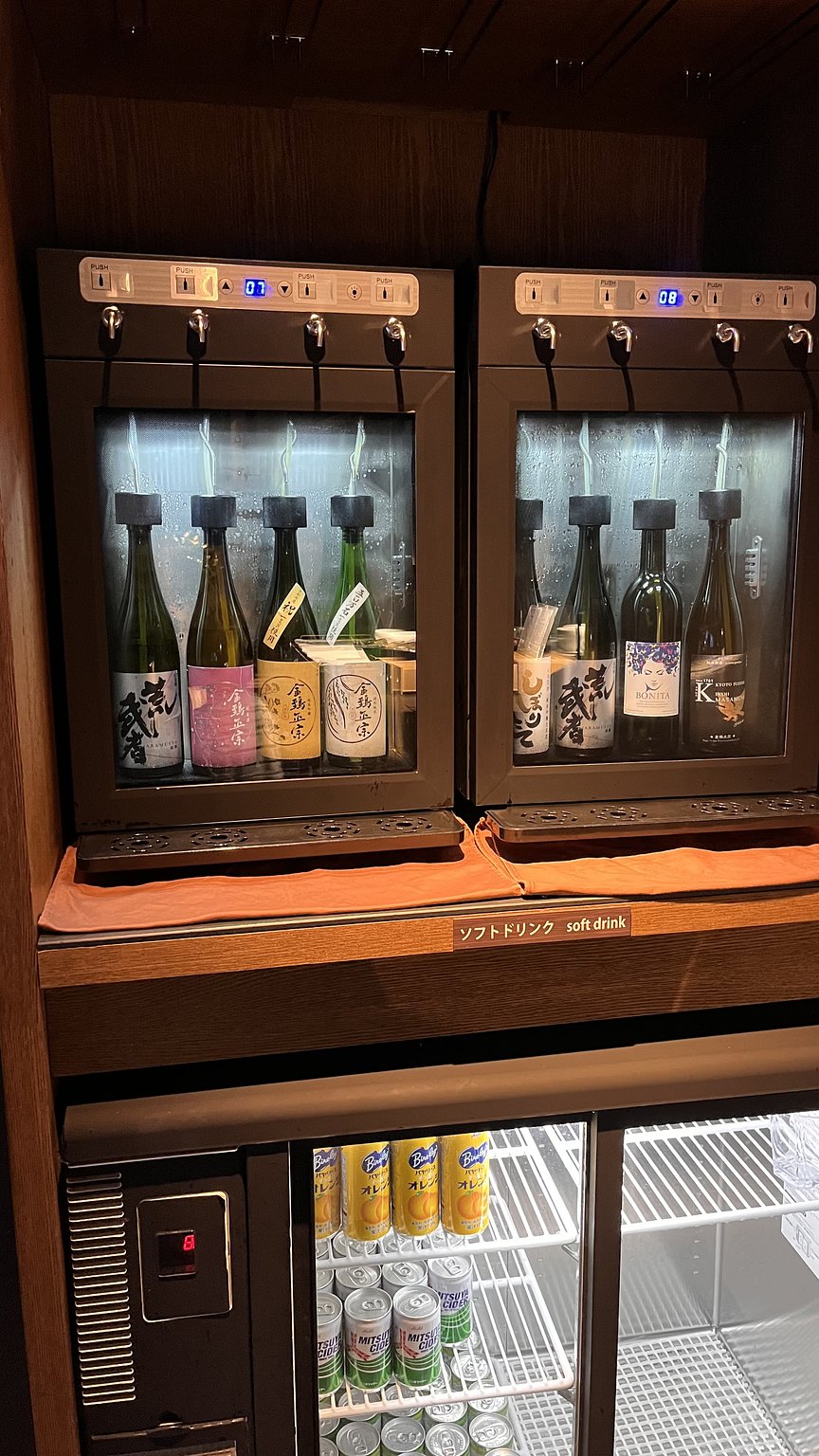 I chose this place because it was a former sake brewery with unlimited sake, which was perfect for my husband, who loves sake, and it was a great decision! Not only is there unlimited sake, but also canned juices and snacks available to enjoy in the room.