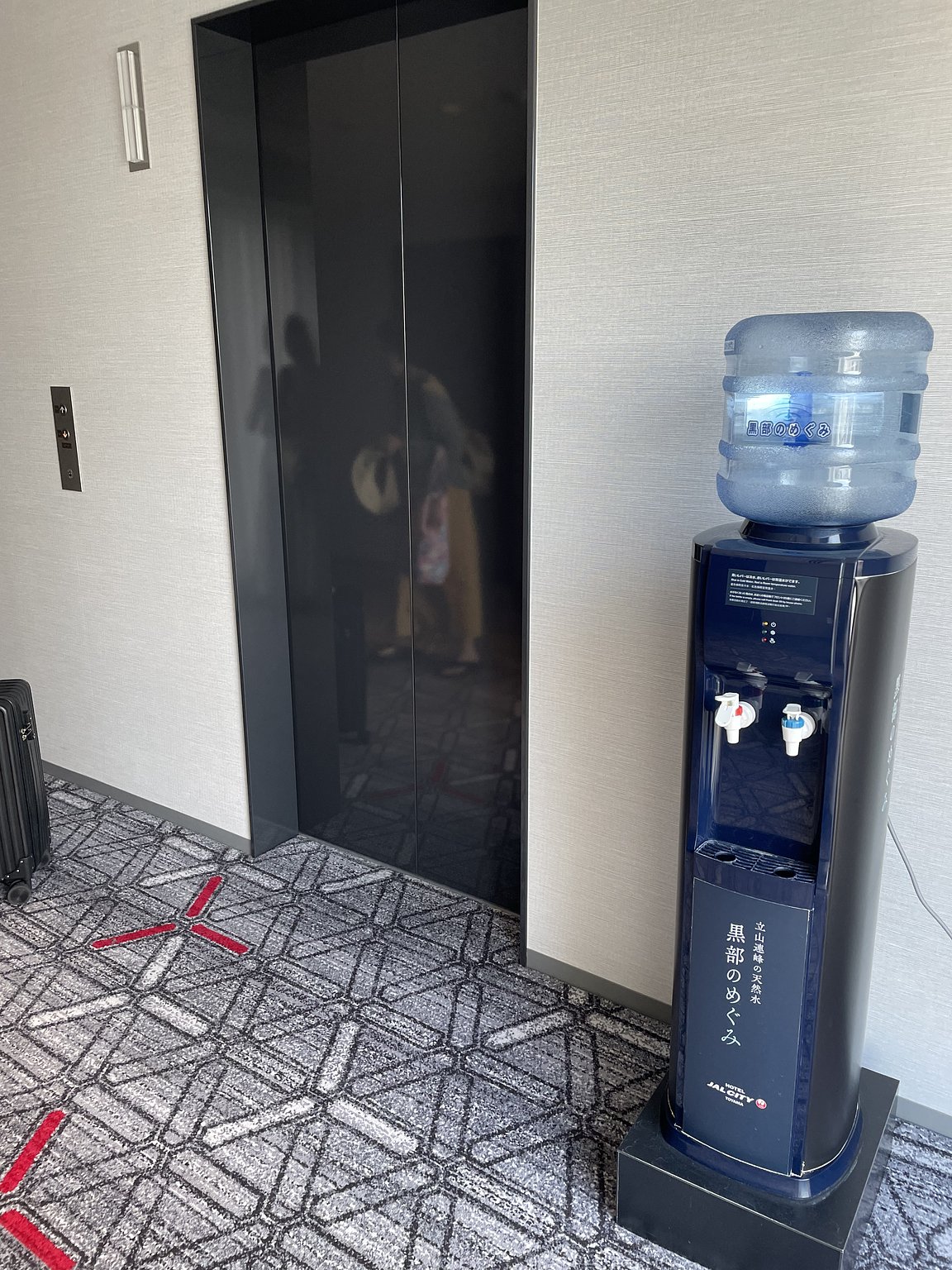 For drinking water, there's a water dispenser in the elevator hall, and you can refill there.