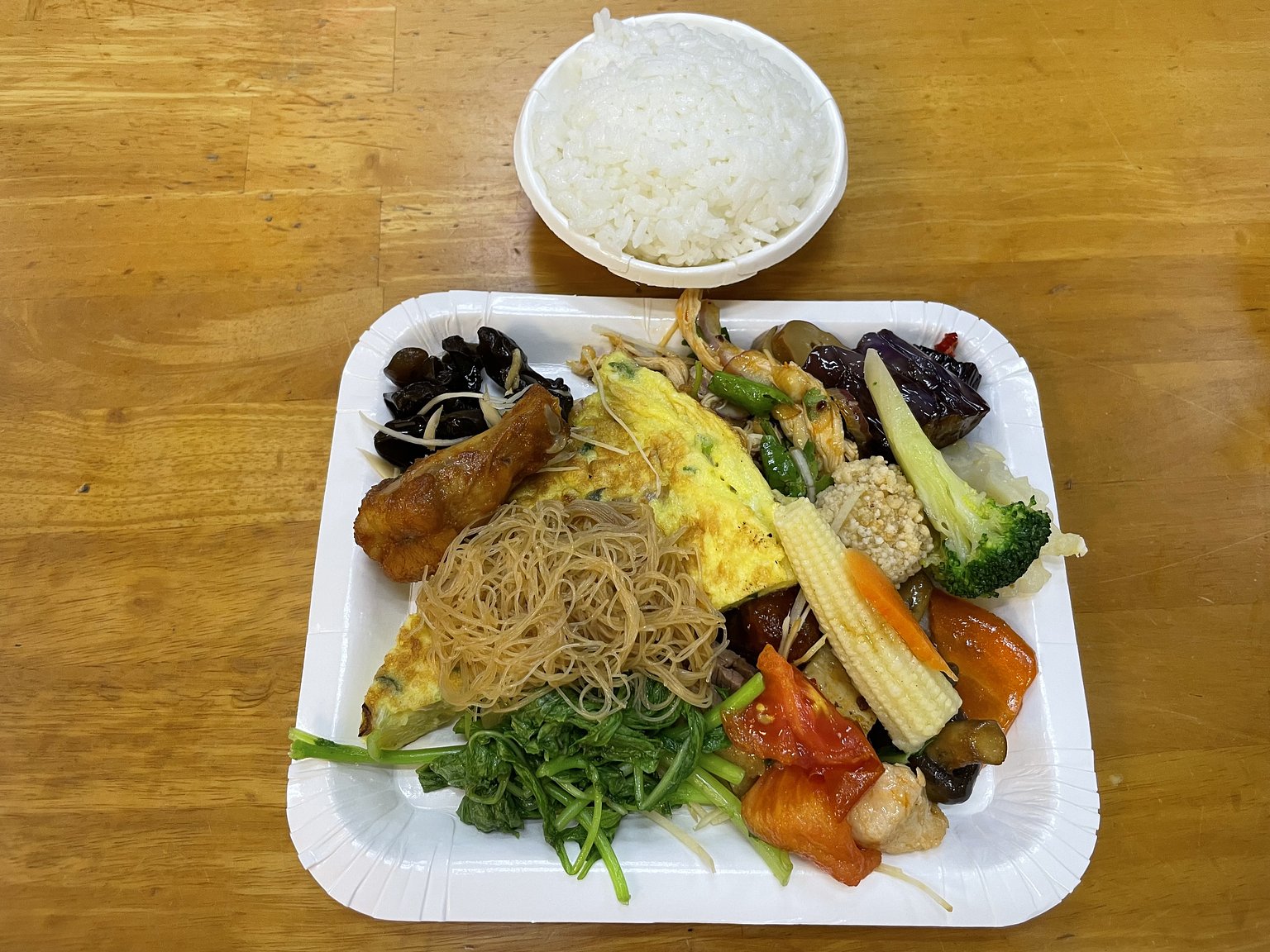 Personally, I recommend Donghai Self-Service Dining. It might be a bit difficult to get to. If you walk from Taipei Arena, it takes about 15 minutes. There are many Taiwanese side dishes lined up, and you take what you want to the shopkeeper. If you want rice 🍚 or soup, you can order there. The shopkeeper will look at what you have and tell you the price. You can eat it on the spot or take it away as a bento. Everything is really delicious.