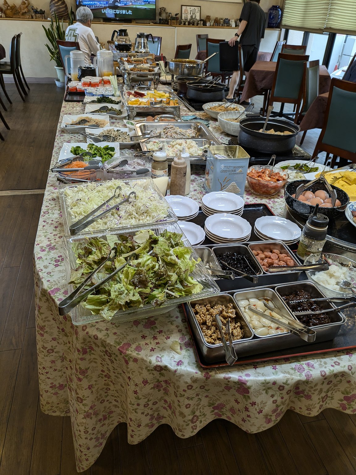 I added a breakfast buffet for 1,500 yen, which included local specialties like doteyaki and miso katsu, with plenty of variety.