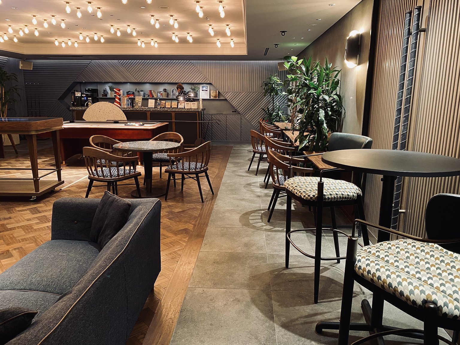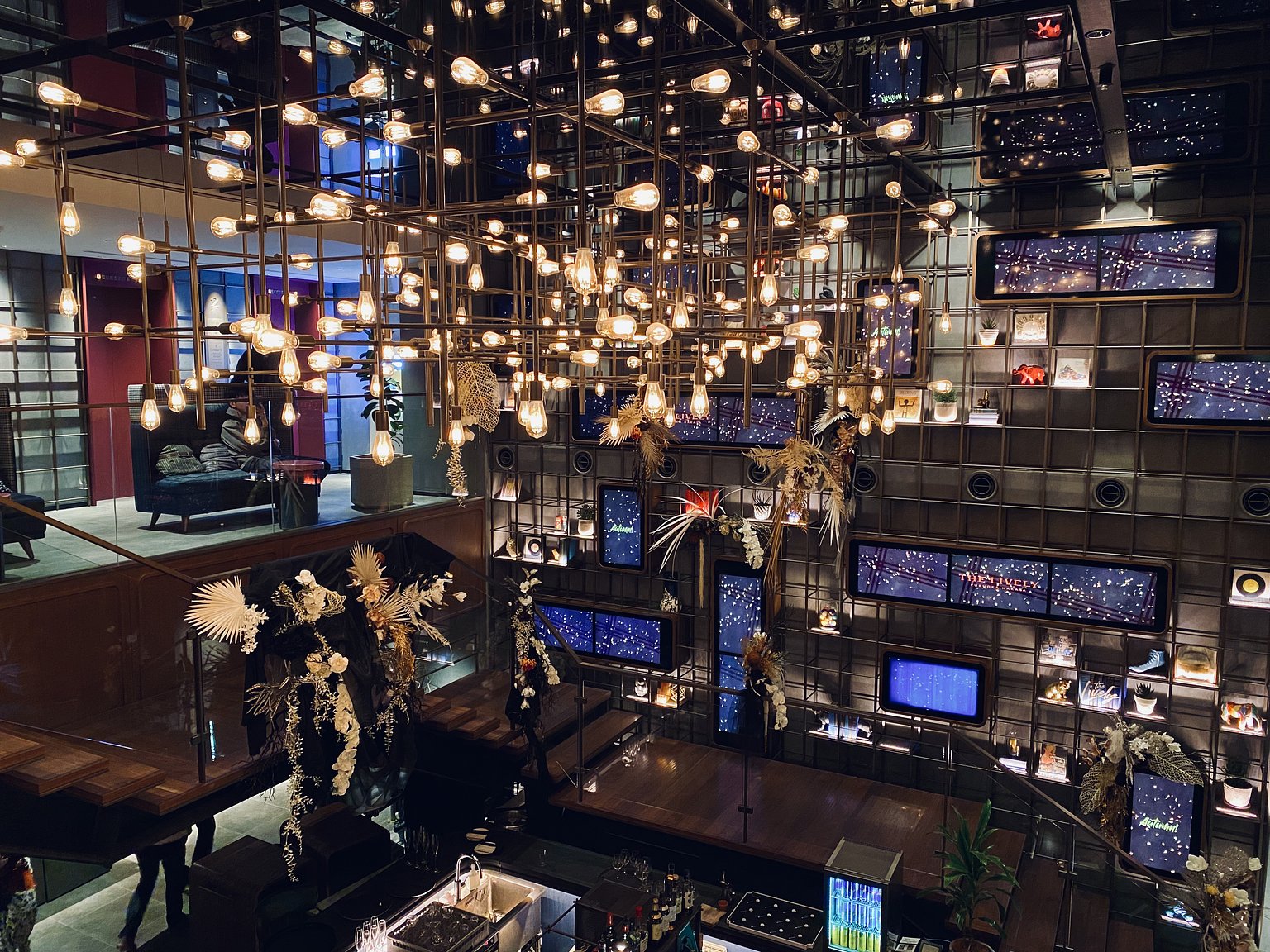 I traveled while based in Fukuoka and Hakata! The charm of the hotel I stayed at was definitely the digital art and unique interior. Everything was photogenic, and there were stylish items I wanted to have in my home. The bar area with a high ceiling was dazzling, and a drink enjoyed there was exceptional. Moreover, there was a one-hour free beer time starting around 5 PM, a great point for beer lovers! Additionally, on the second floor, there's a lounge and work space where you can enjoy coffee or tea for free, perfect for working. The location is convenient, just a short walk from the exit 2 of Nakasu-Kawabata Station on the subway. And I was impressed by the capsule-type beds! With a dedicated iPod, you can freely adjust the bed's shape to sofa or flat, and when the alarm is set, it transforms back to the sofa shape in the morning, allowing for a comfortable wake-up. This makes the alarm clock, often a drawback of capsule hotels, easy to use. It's the perfect hotel for a solo trip! If you come to Fukuoka, make sure to experience it.