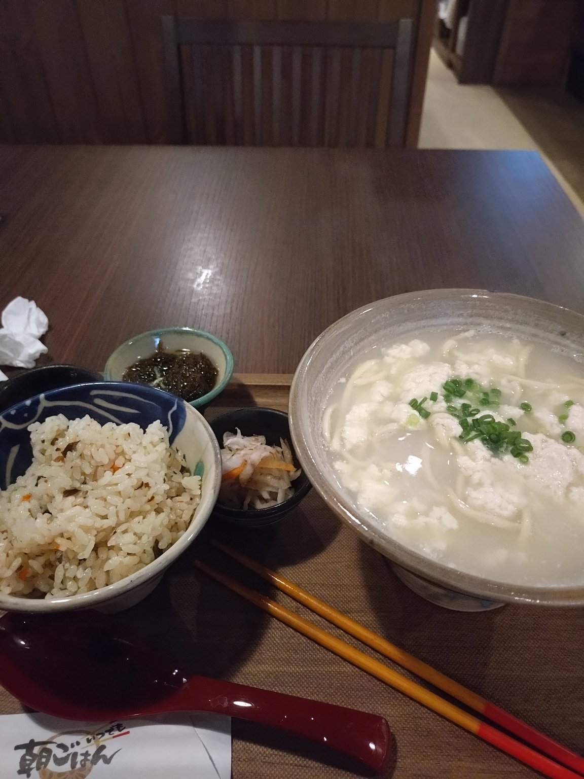 In the morning, I savored a set of Okinawa soba with yushi tofu, available from 7 am on Kokusai Street. The Okinawan mixed rice "juushi" and the "yushi tofu" that can only be found in Okinawa were delicious. Of course, I splashed in some "ko-ree-gus".