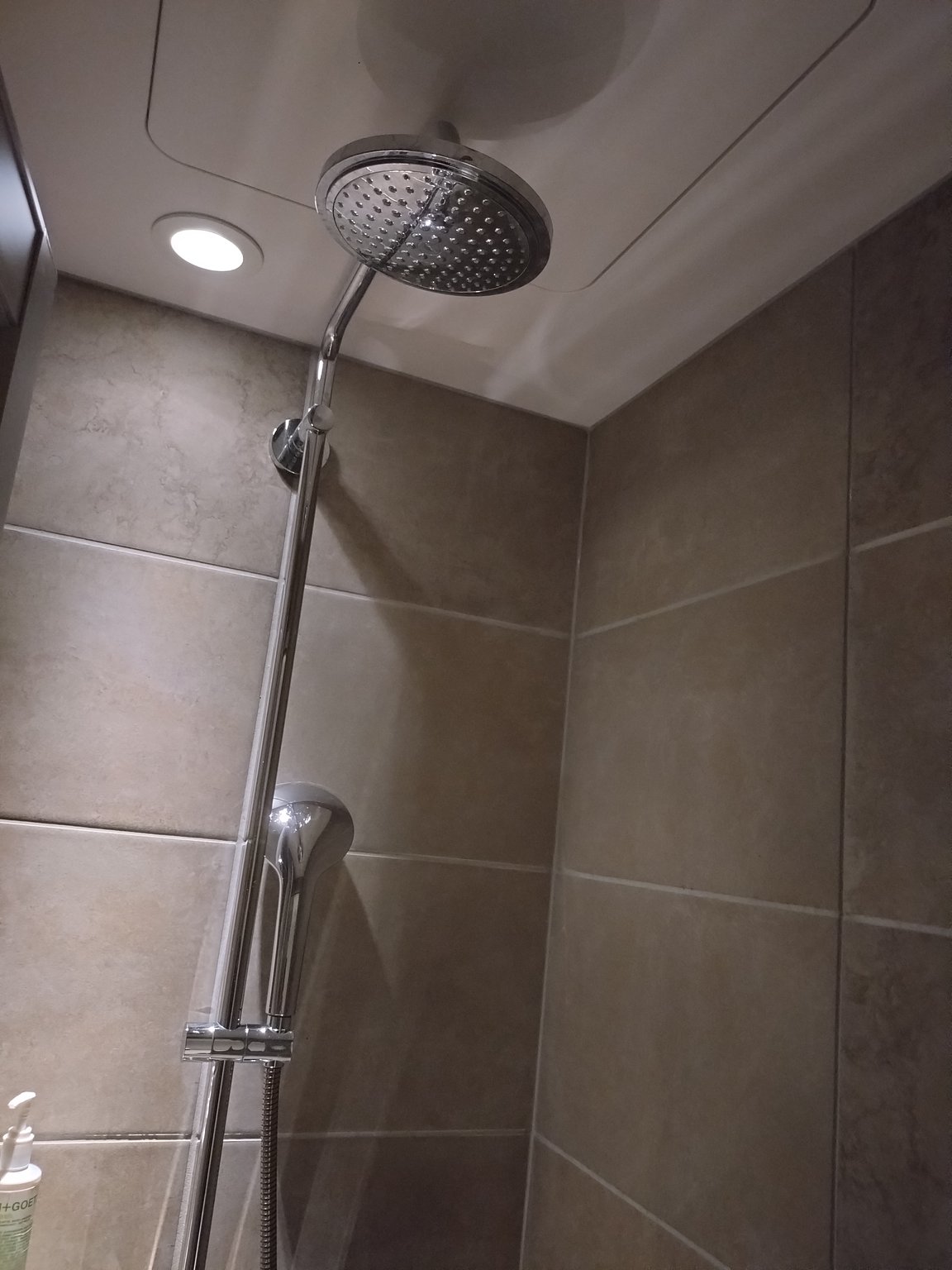 【Onsen】There is no bathtub. I heard there is one on the next level, but the showerhead I took a picture of was very comfortable. It quickly washed off the sweat from my body. There’s also a handheld shower, and amenities are provided. Sometimes, such a stay is good.