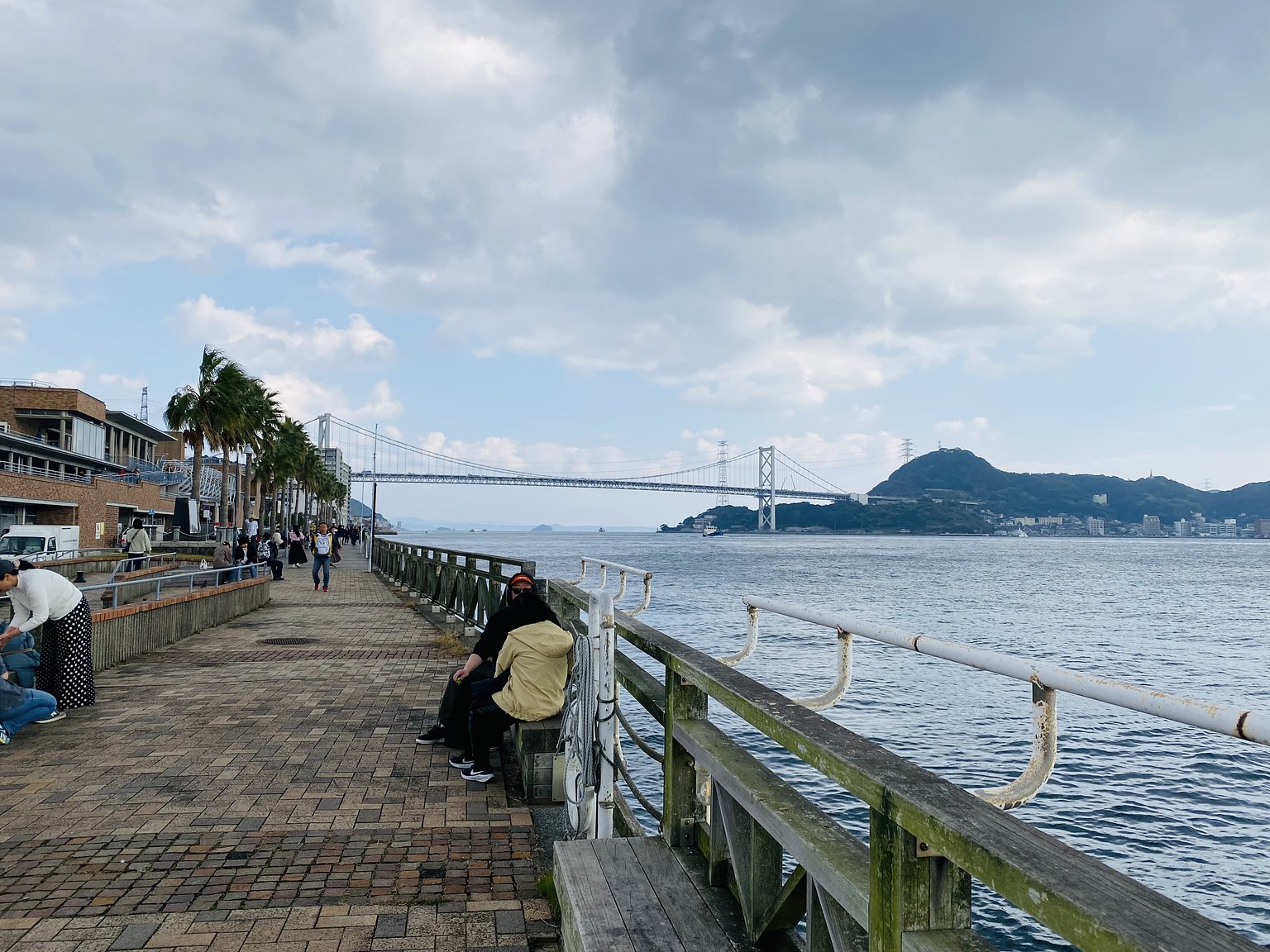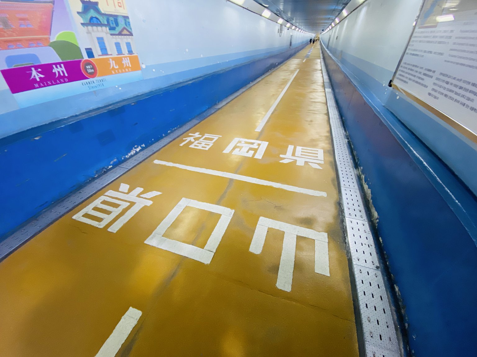 Afterward, I visited Akama Shrine and the Kanmon Tunnel. Akama Shrine is a shrine associated with the Tale of the Heike, dedicated to Emperor Antoku who died in the Battle of Dan-no-ura. The vermillion Suijin Gate and the beautifully maintained grounds were impressive. It was a moment to reflect on the history of the Heike clan. The Kanmon Tunnel is an underwater tunnel about 780 meters long that connects Honshu and Kyushu. It can be crossed on foot, and I experienced a refreshing feeling while walking back and forth from Shimonoseki to Mojiko.