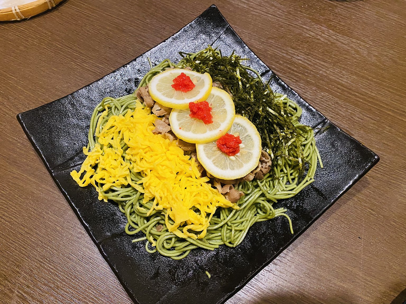 Arriving in Shimonoseki in the evening, I first headed to 'Tsukumo Shimonoseki Ekimae Branch' for a meal. I ordered kawara soba, anko (anglerfish) tempura, and gyoza, and toasted with a lemon sour drink. Everything was exquisite, especially the anglerfish tempura, which was fresh and delicious as Shimonoseki is known for having the highest catch in Japan! It was my first time eating kawara soba, and the combination of its toasted flavor and sauce was exceptional, making it a dish I want to repeat.