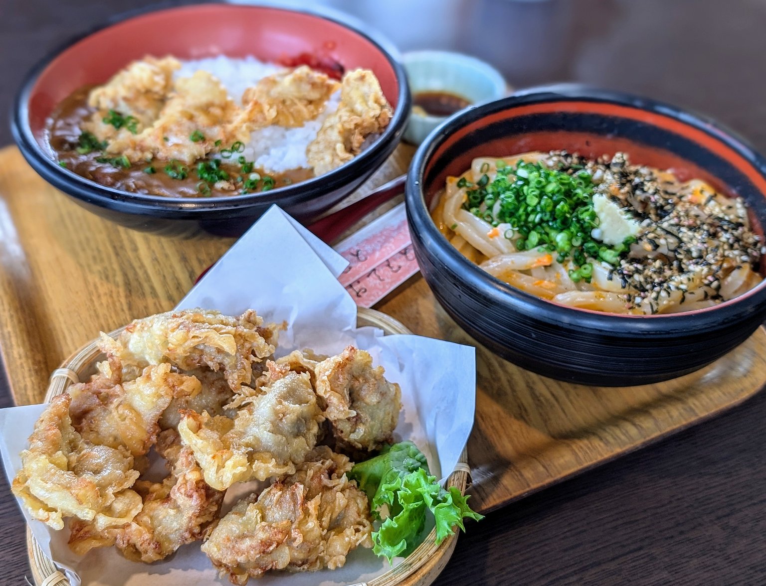 For dinner, I had tempura rice, fried chicken, and kabosu sea bream rice at a famous dining place nearby, Toyojou Beppu Main Store, and all of them were delicious. It was great to go early as it is popular and often featured on gourmet TV shows, with long lines.