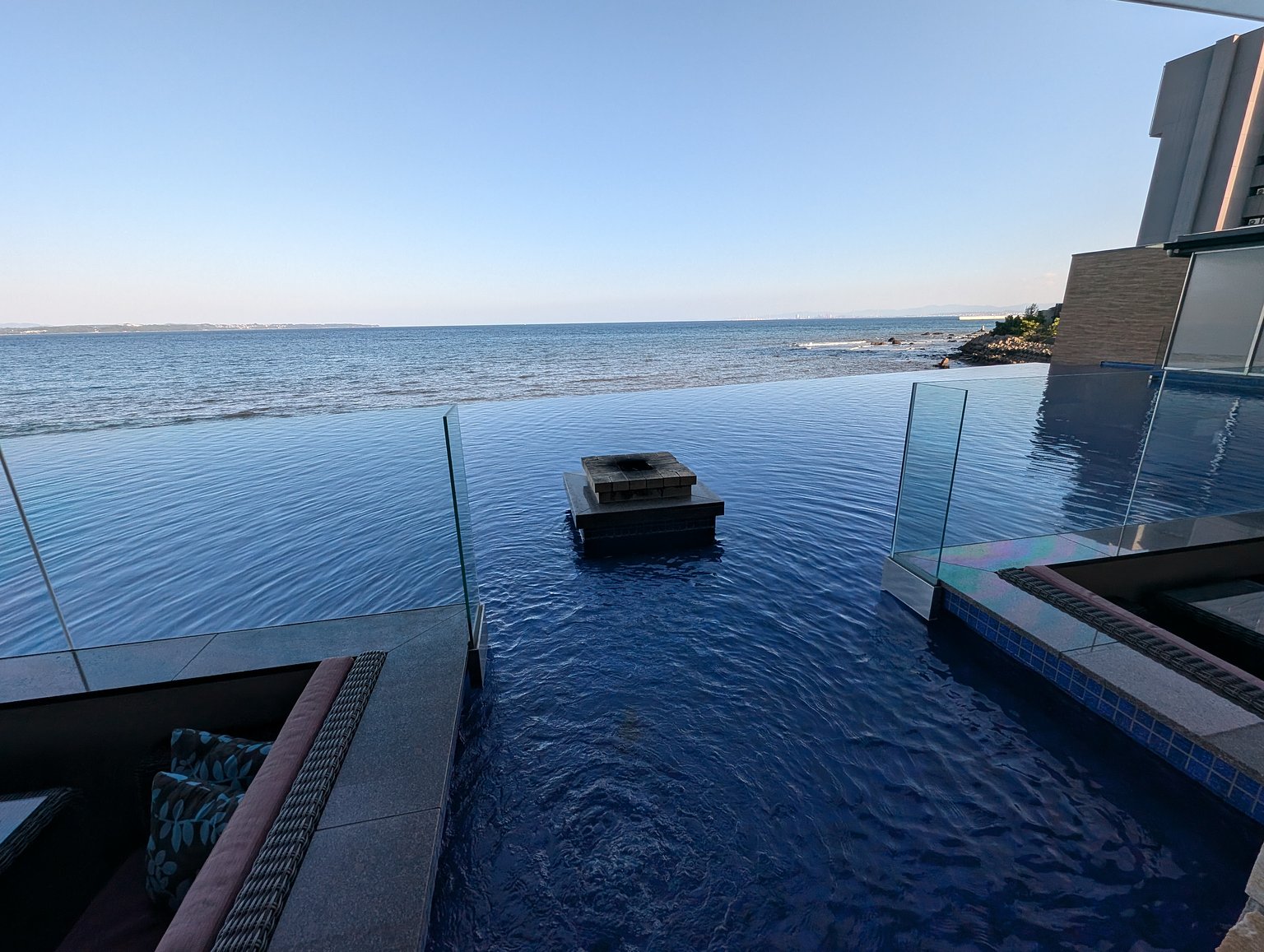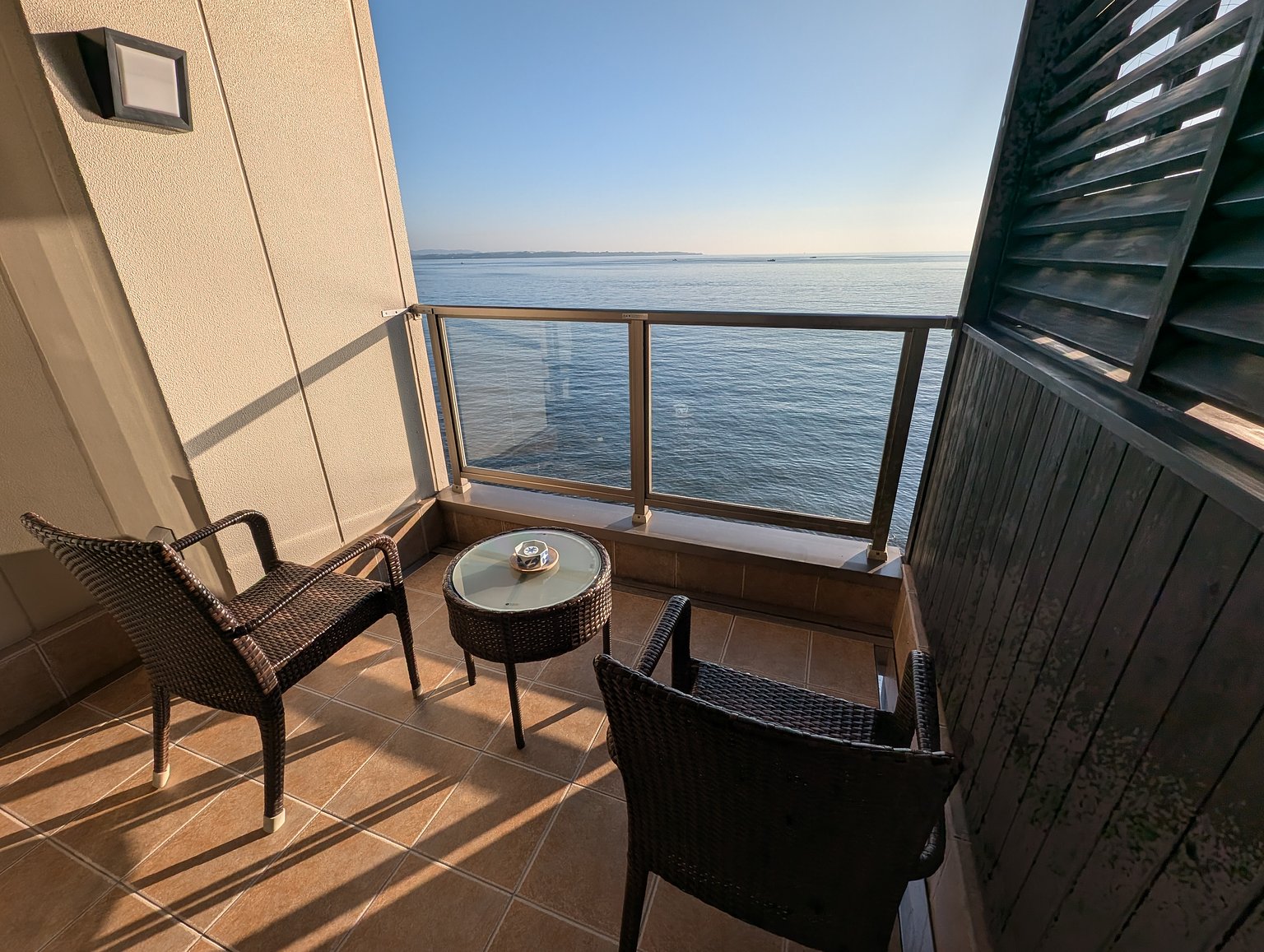 The room was spacious and beautiful, with ocean views from all rooms, and the sound of the waves was so soothing that I could relax deeply.