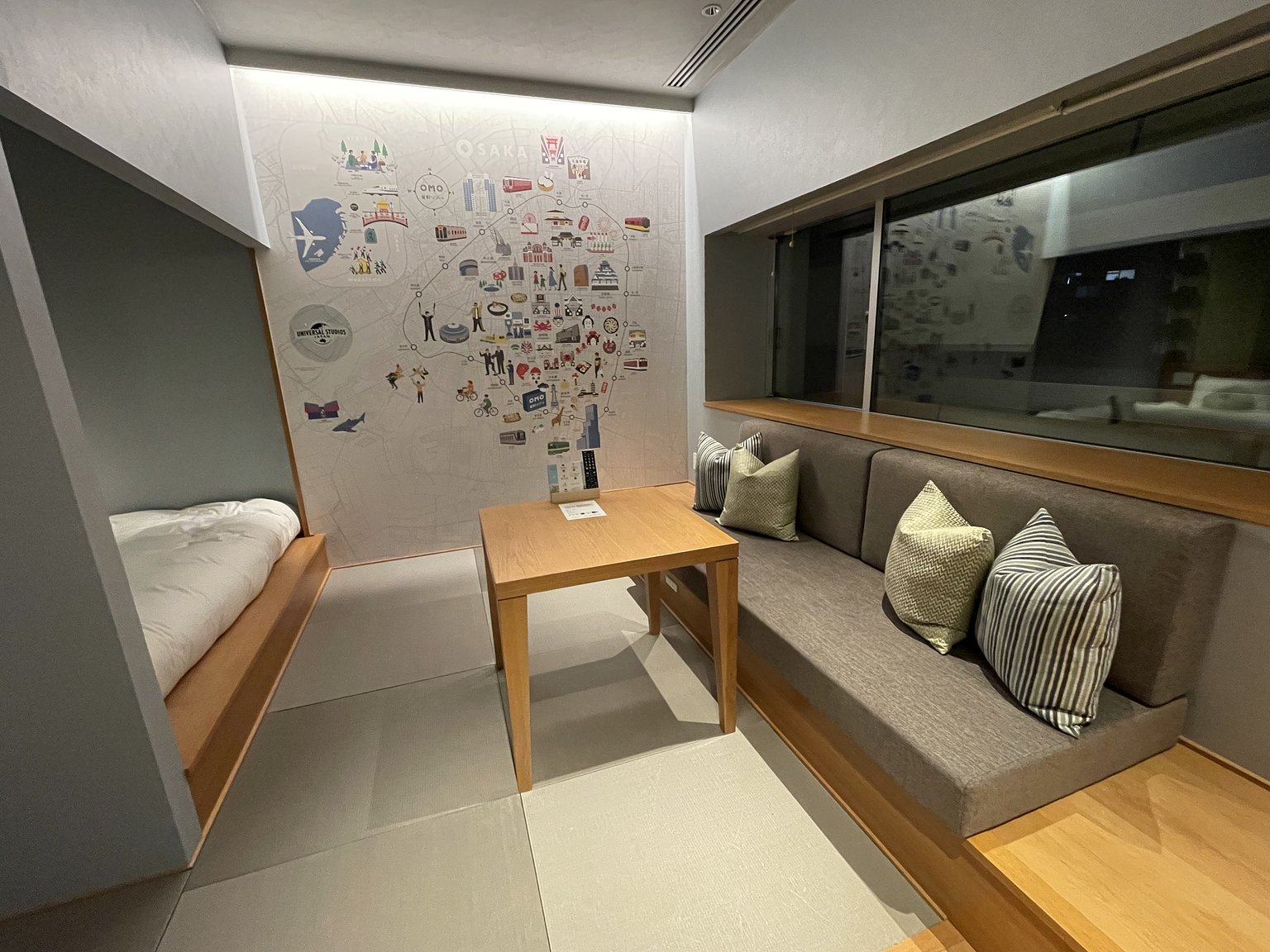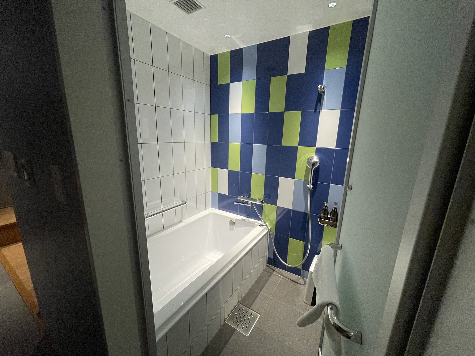 I stayed in a king room for four nights and five days in December. It was so quiet... I couldn’t hear any noise from the neighbors. The bed is surrounded in a U-shape, making it perfect for children who need to sleep with their parents. There is a large public bath on the premises, and in addition, there is a bathroom with a bathtub separate from the toilet in the room. It's a wonderful hotel without worries of night crying! I appreciated the hospitality of the pineapple candy provided in the room. At night, food stalls appear in the garden in front of the lobby. They provide takoyaki, drinks, and beer for free. After taking a bath, strolling around in a yukata gave me a feeling of a small festival, which was exciting. Inside the hotel, there is a rental space-like workroom available for a fee. It's convenient for meetings or when you want to work quietly. It seemed that a reservation was necessary for the restaurant, but light meals could be enjoyed without a reservation. Personally, I love this room the most out of all OMO hotels, and I could easily stay many more nights in this relaxing space. The station is right in front, so access from the station is a short 2-3 minute walk, and there is also parking on the first floor.