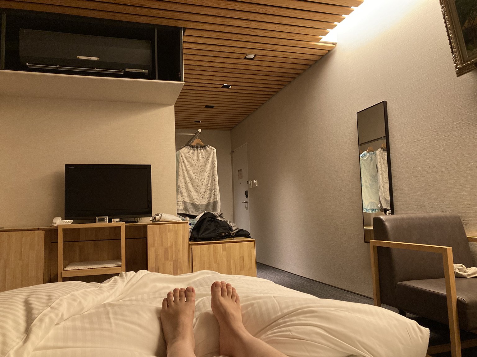 Kengo Kuma's architecture is scattered around this facility, providing access to libraries, hot springs, and museums during the hotel stay. The room is compact yet beautifully designed with a wooden louvered ceiling, and the thatched roof exterior has its own charm. At the store on the first floor, I was also able to get local snacks as souvenirs.