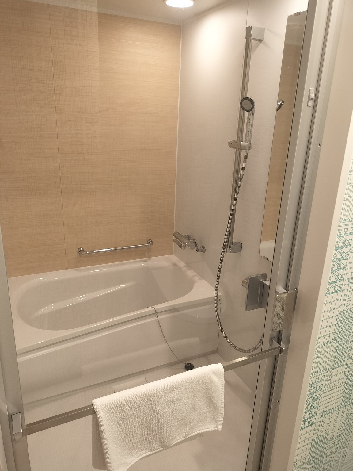 Throughout the hotel, emerald green can be seen, giving it a modern interior design. There is a large public bath in the basement, but since the bathroom in my room was spacious enough, I skipped the public bath and used my room instead. The view from my room at night was great, as it is located a little away from Nagoya Station.