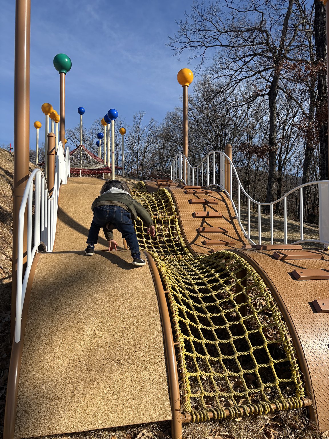 It was winter, but the weather was sunny and there was no wind, so it was warm and the children played energetically. Around 10:00 AM, more people started to arrive, which made me realize it was a popular park.