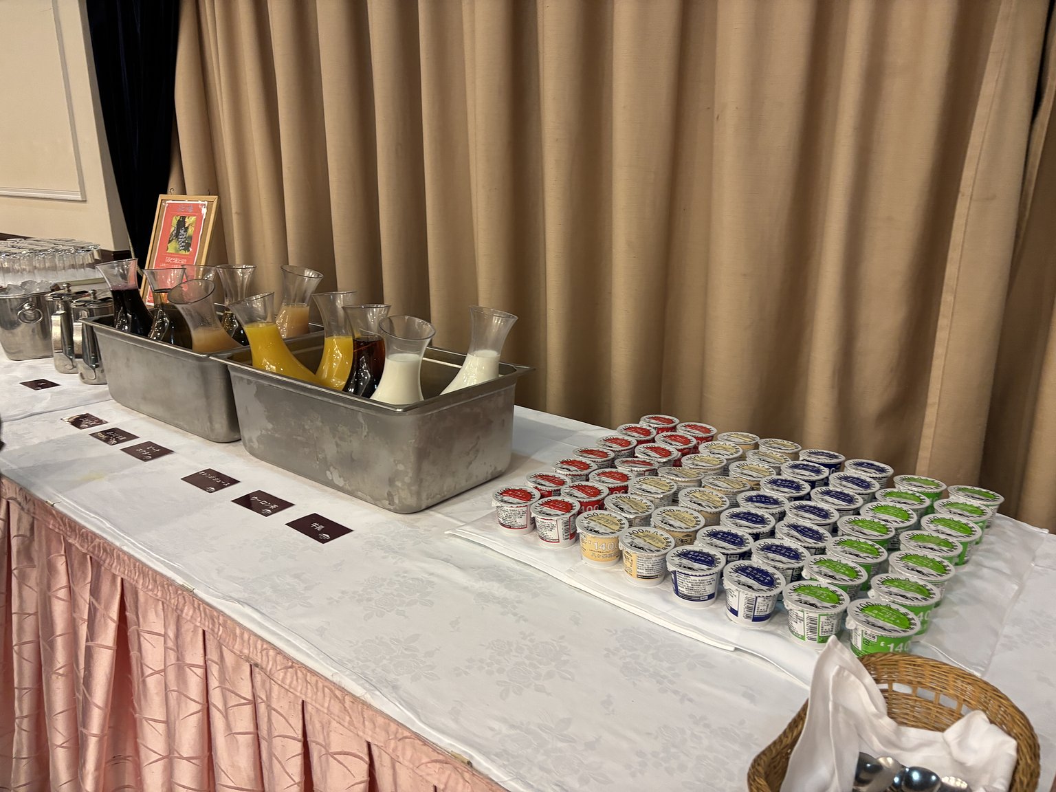 大人2.200円(1人当たり)、子供1.100円(1人当たり)でオプションを付けていただきました。大きな会場での食事で、種類もありました。