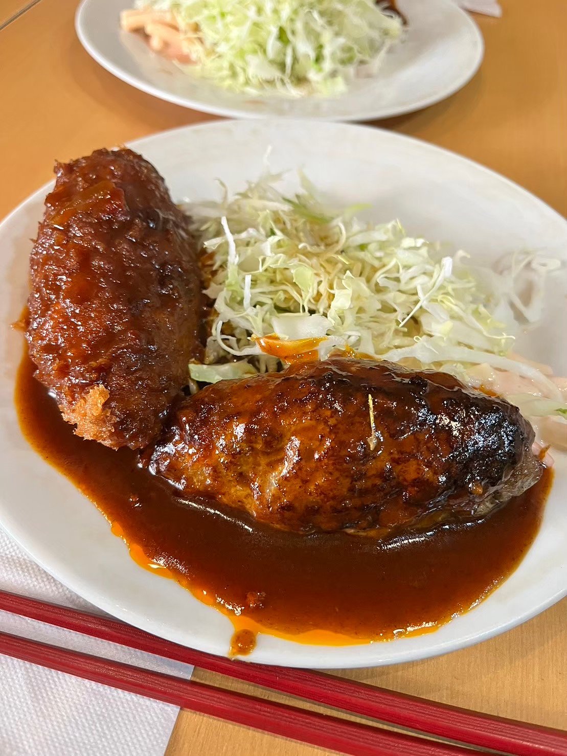 Here, we visited 'Kitchen Matsumura,' which was chosen by the show 'Kitanashuran' for its excellent taste (though the place has a bit of age). It's an old-fashioned Western-style restaurant, and I've never encountered such taste at this price. The place may not be clean, but it's run by just one owner, and I highly recommend it! The hamburgers are well-kneaded and delicious.