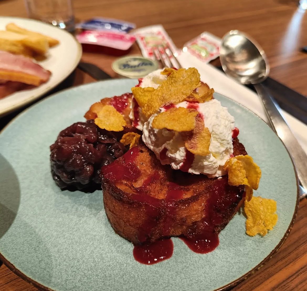 You must try the breakfast. From French toast as a highlight, the live kitchen is impressive.