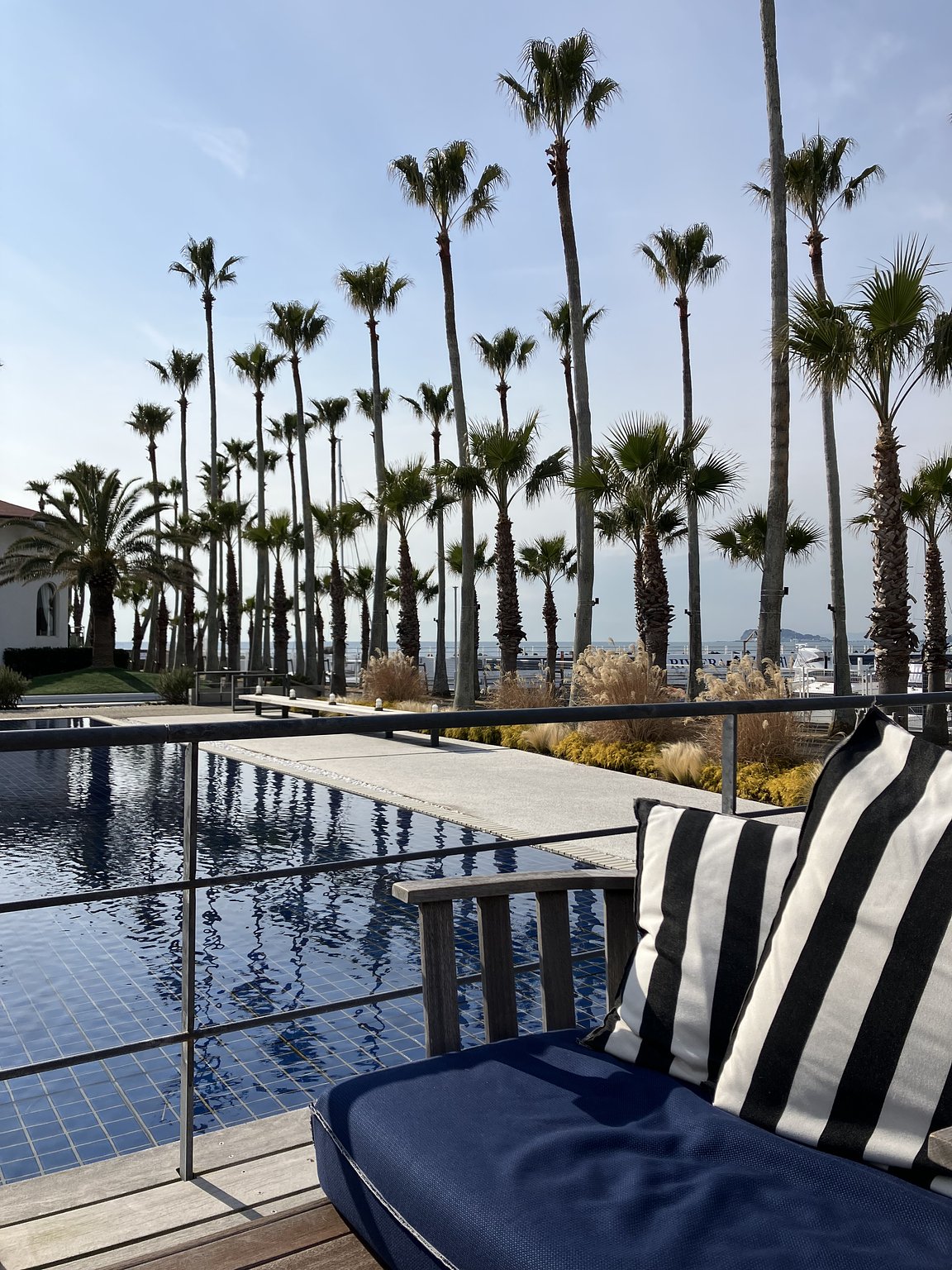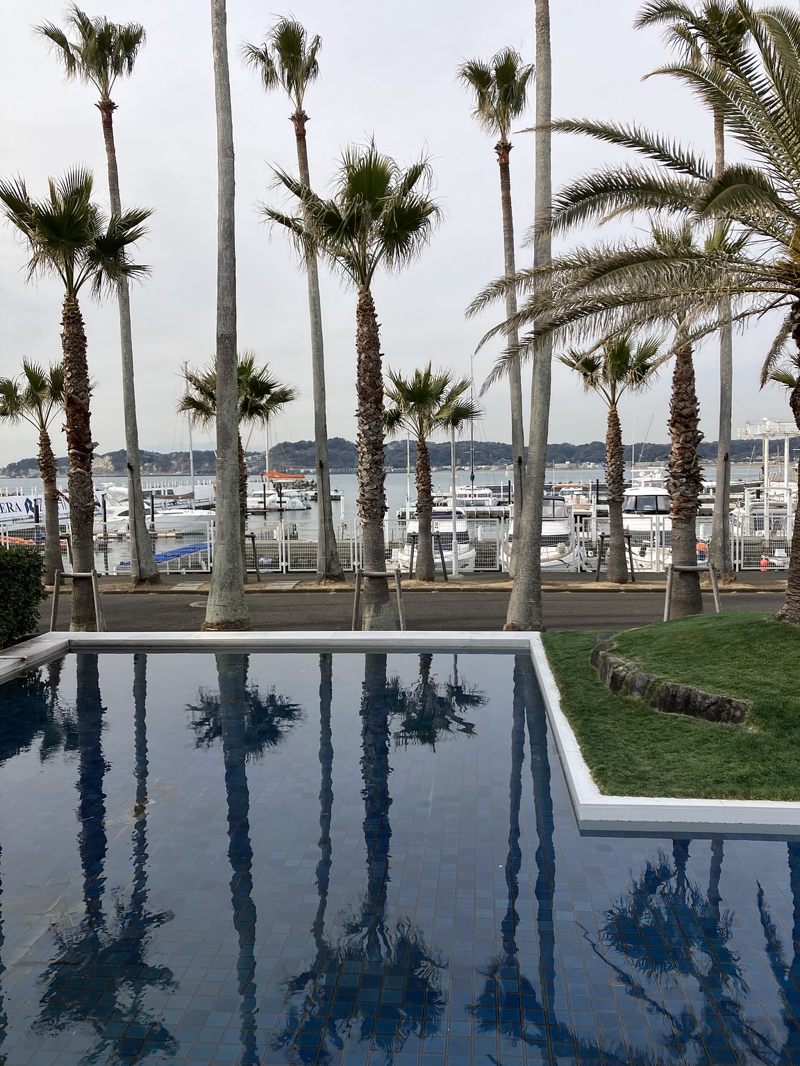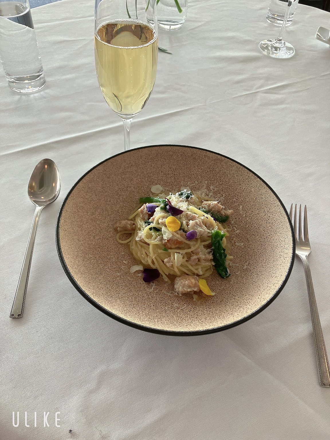 The first place I visited on this trip was Kameoka Hachiman Shrine, which was surprisingly right in front of the station. I was also able to enjoy a ticket for a girls' trip at Hayama Marina, where I received free hair balm at a beauty salon inside the marina. For lunch, I had edible flower pasta at Ristorante AO, which was featured in Hayama's girls' travel guide, and it was very satisfying. The restaurant had a unified white decor and a great location, and there was even a wedding happening that day, which brought a happy atmosphere.