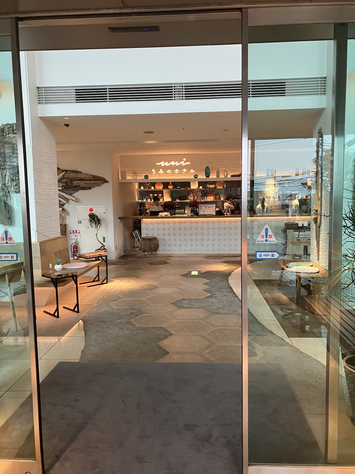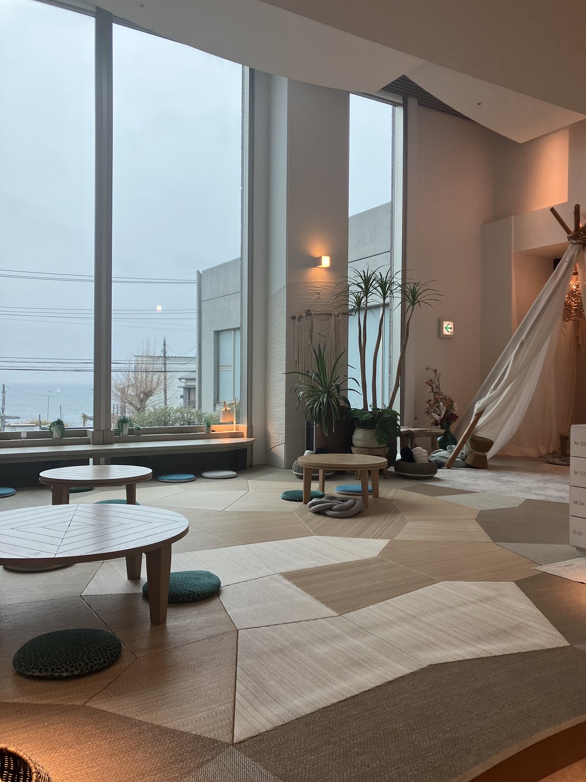 As you enter, the reception and a big kitchen are visible straight ahead, creating a cozy, homely atmosphere rather than a typical hotel. The bath was an onsen, and it was amazing to see the ocean while bathing. I'm eager to return, and since there are several accommodation options, I’d like to stay on the ocean side next time.