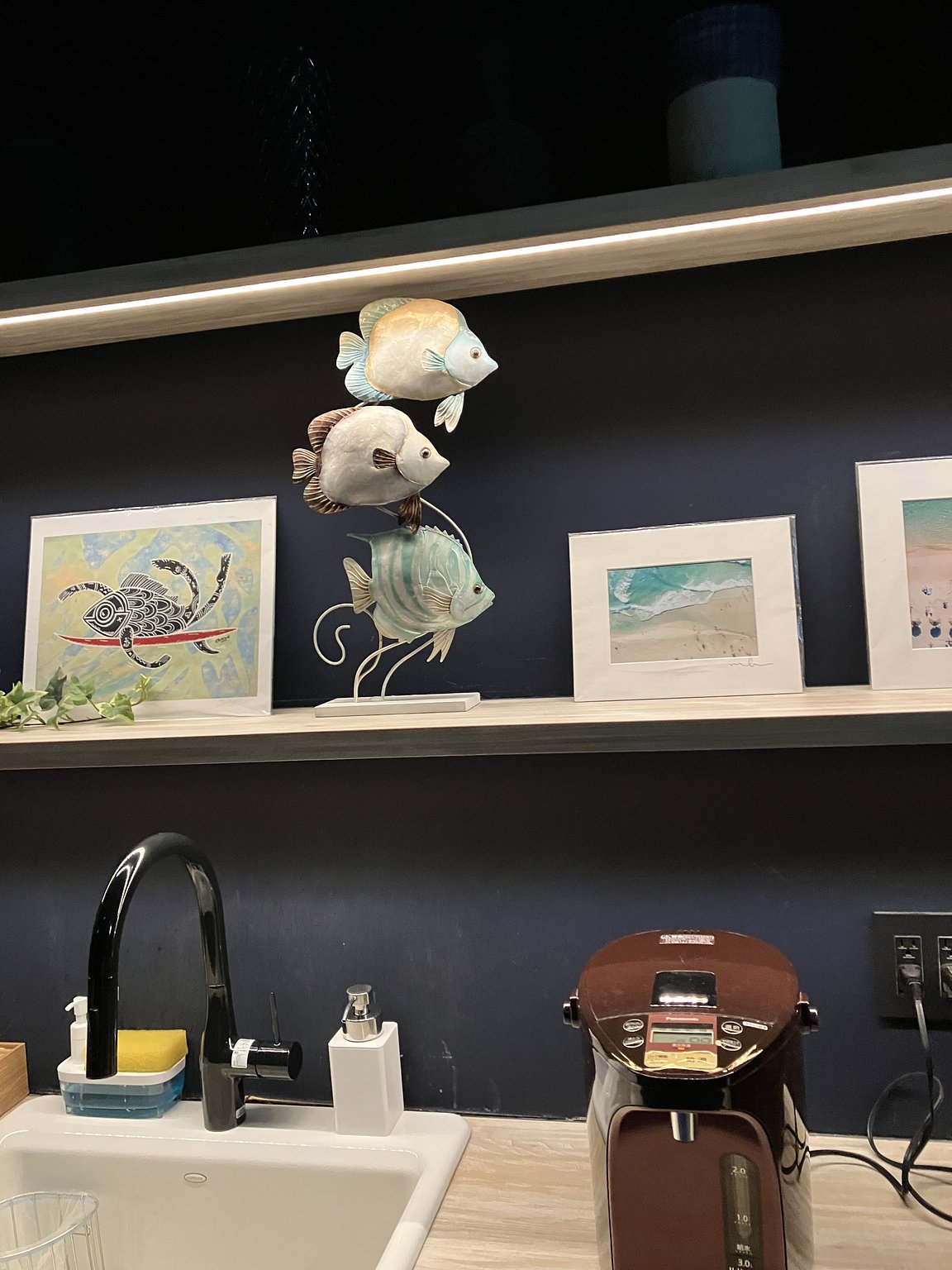 I stayed in a dormitory, a two-story space meant just for sleeping, but it was more spacious than I expected. I’m 156 cm tall, so I could stretch out and sleep comfortably. In the evening, I utilized the dining area for meals, which had hot water pots, microwaves, and a washing machine, making it feel like I could stay for multiple nights. In a word, it felt like a large vacation home. You don't mind sharing the dining area with strangers at all. The entire hotel has a coastal theme.