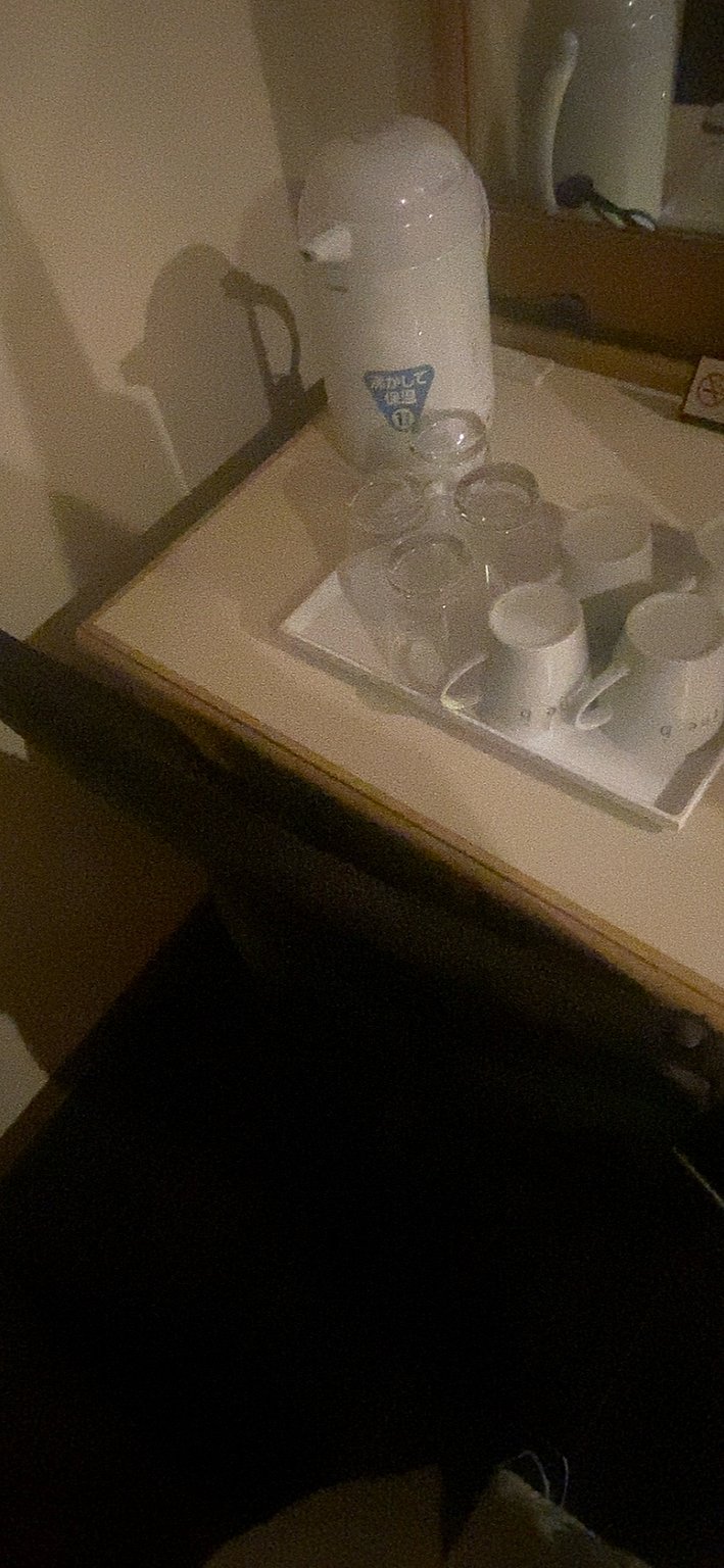 It might be hard to find as the streets are a bit complicated. There’s a Don Quijote nearby, and many restaurants, so it’s convenient. The building is old, but if you’re just staying overnight, it’s fine. There was a mug provided. The coffee machine on the first floor made delicious coffee. I was happy that there was a large public bath.