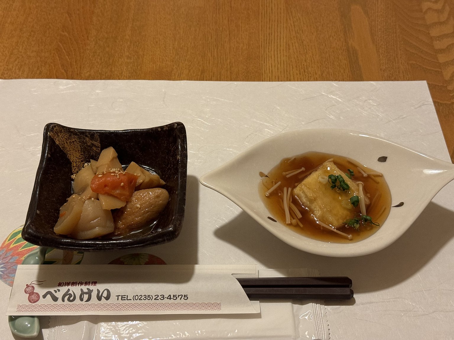 One of my goals during this trip was to meet up with a friend living in Tsuruoka. The hotel itself is accessible via bus from Shonai Airport or a 20-minute walk from Tsuruoka Station. First, we went to Kamo Aquarium, famous for its jellyfish dome. Unfortunately, it rained, but I've heard the sunset is beautiful when it's clear. The next day we visited the Dewa Sanzan. We also went to Yudono-san, known as the mountain of rebirth. Photography is prohibited here, and you must enter barefoot into this sacred area. On the final day, we visited a beautiful pond created by spring water known as Maruike-sama. Thanks to my friend who drove us around, we were able to visit various places and had an enriching three days. It's definitely necessary to have a car if you want to explore. The food photo is from a soba shop in "Pickled Vegetable Village," where you can enjoy unlimited pickles. It's located within Dewa Sanzan. The izakaya "Benkei" serves local cuisine and sake. "Gin no Suzu" is a more upscale izakaya that is also within walking distance from the station. We wrapped up our trip with pork cutlet from Hirata Bokujyo at Shonai Airport. It was a great trip.