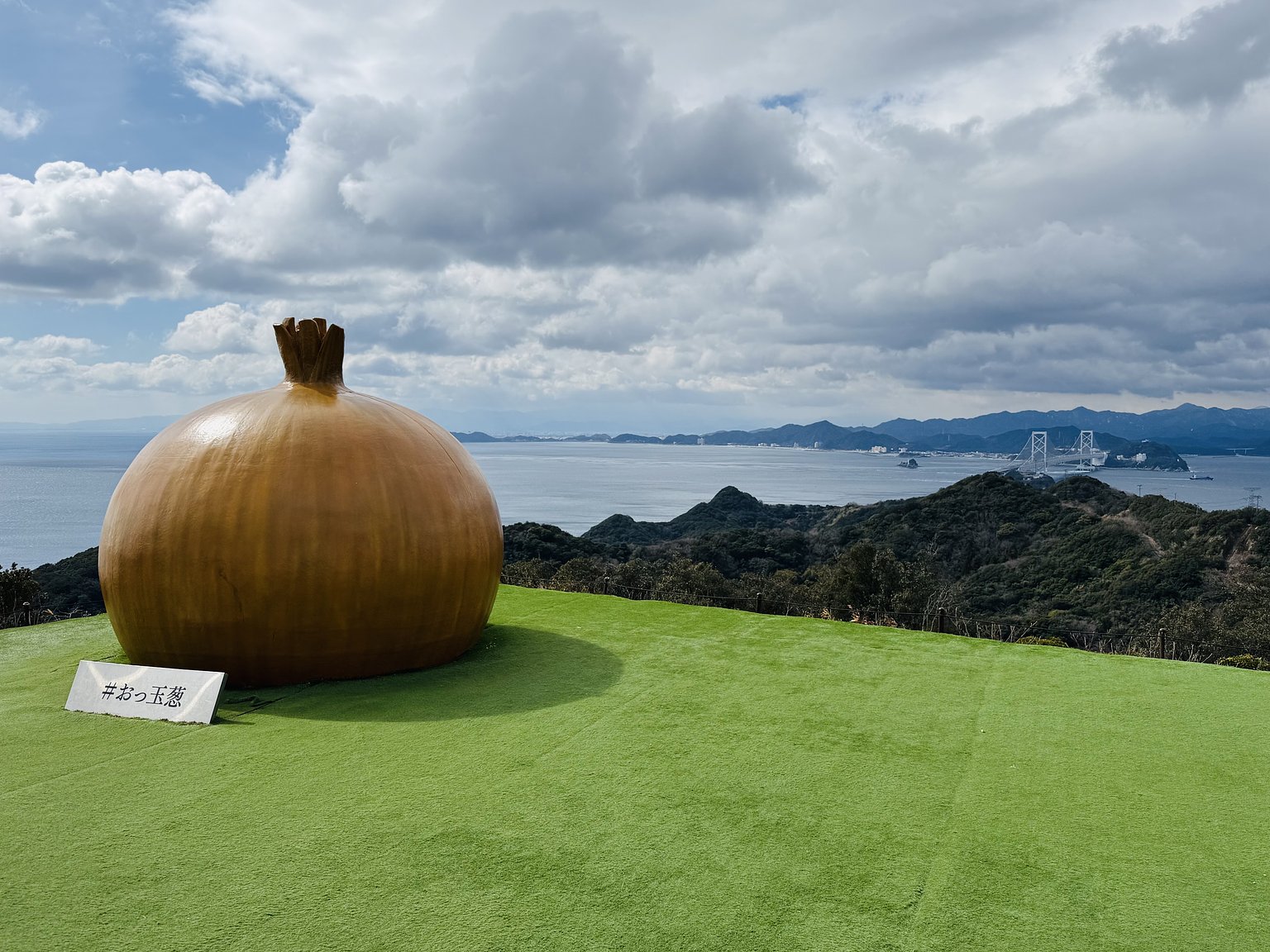 There is a gigantic onion sculpture called 'O-Tamanegi' at the observation deck. The 'Awajishima Burger' at the entrance is highly recommended.
