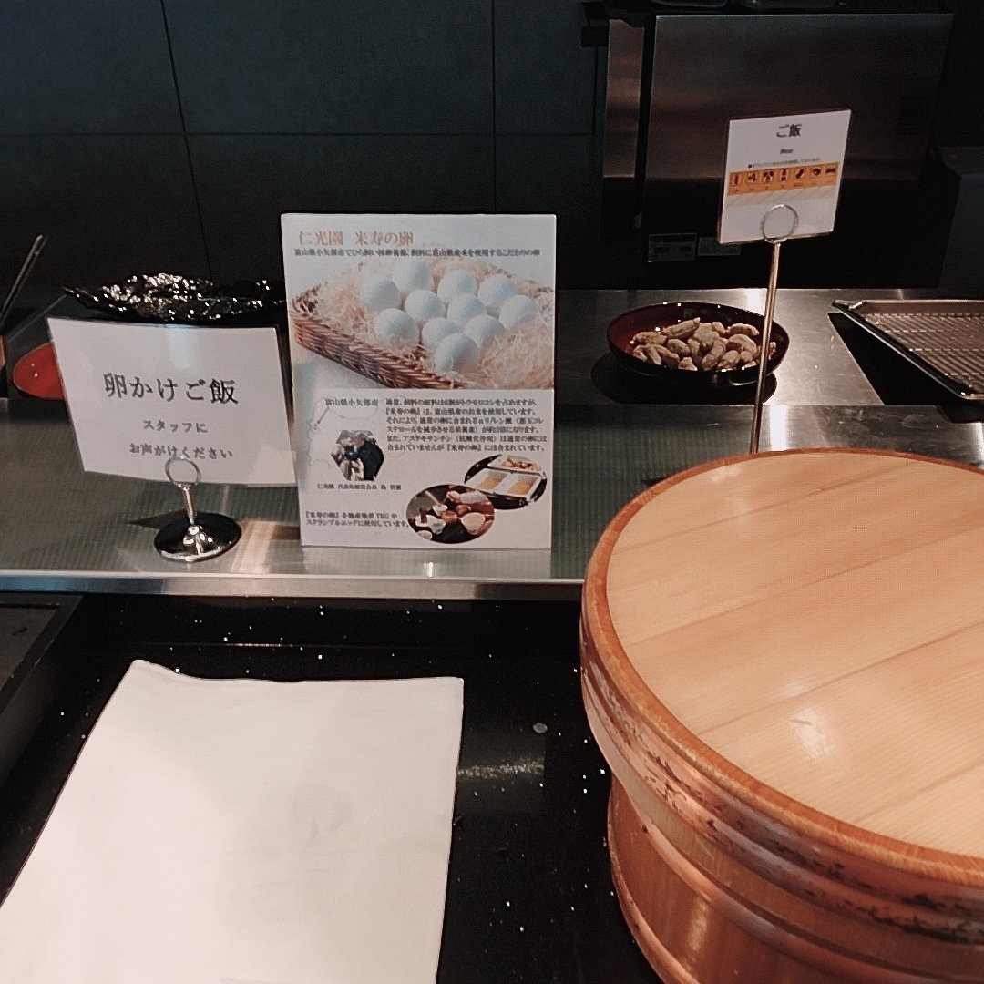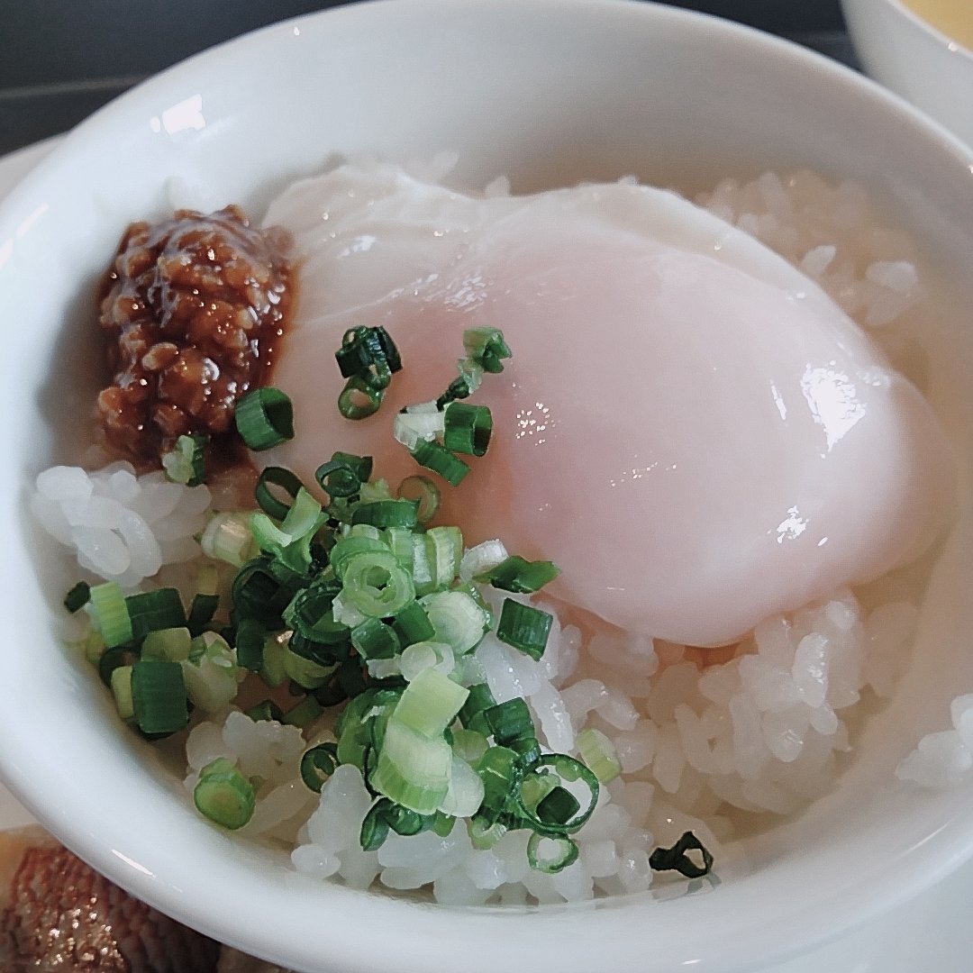 And the breakfast was exceptional! Starting with a rice bowl with raw egg, followed by poached eggs, soy sauce marinated foods, delicious Toyama rice, and sea bream, it was truly a luxurious breakfast. What a fantastic way to start the day with such a great meal! The only downside was that I couldn't use the sake stand that was available... I hope to enjoy it next time! 😭