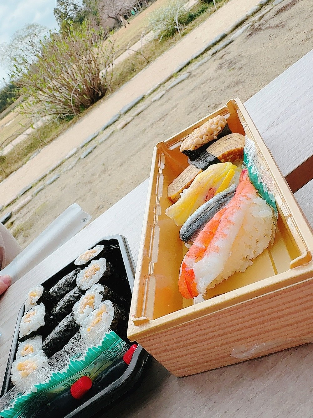 Okayama's specialty, Mamakari sushi and yellow chive sushi.