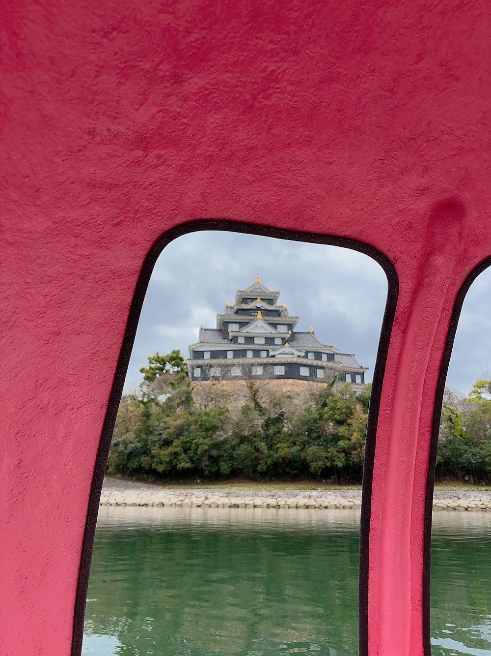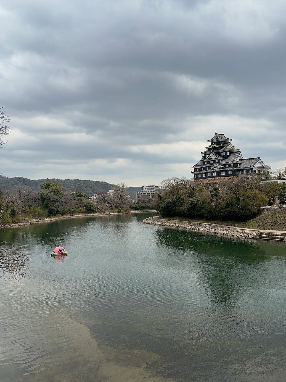 Drift on a peach boat for 20 minutes under Okayama Castle.
