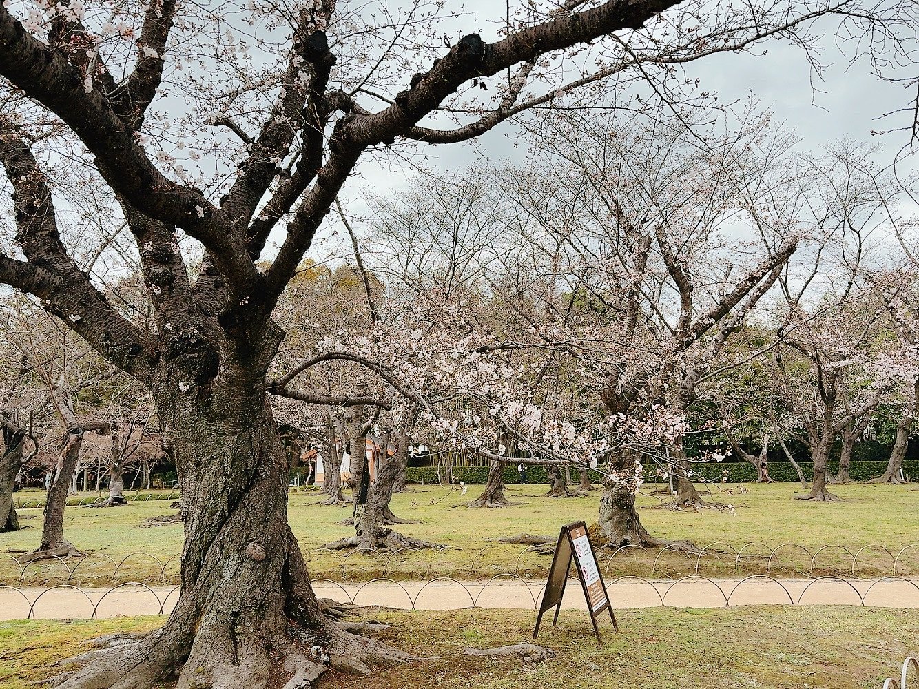 In spring, there's a cherry blossom-lined path!