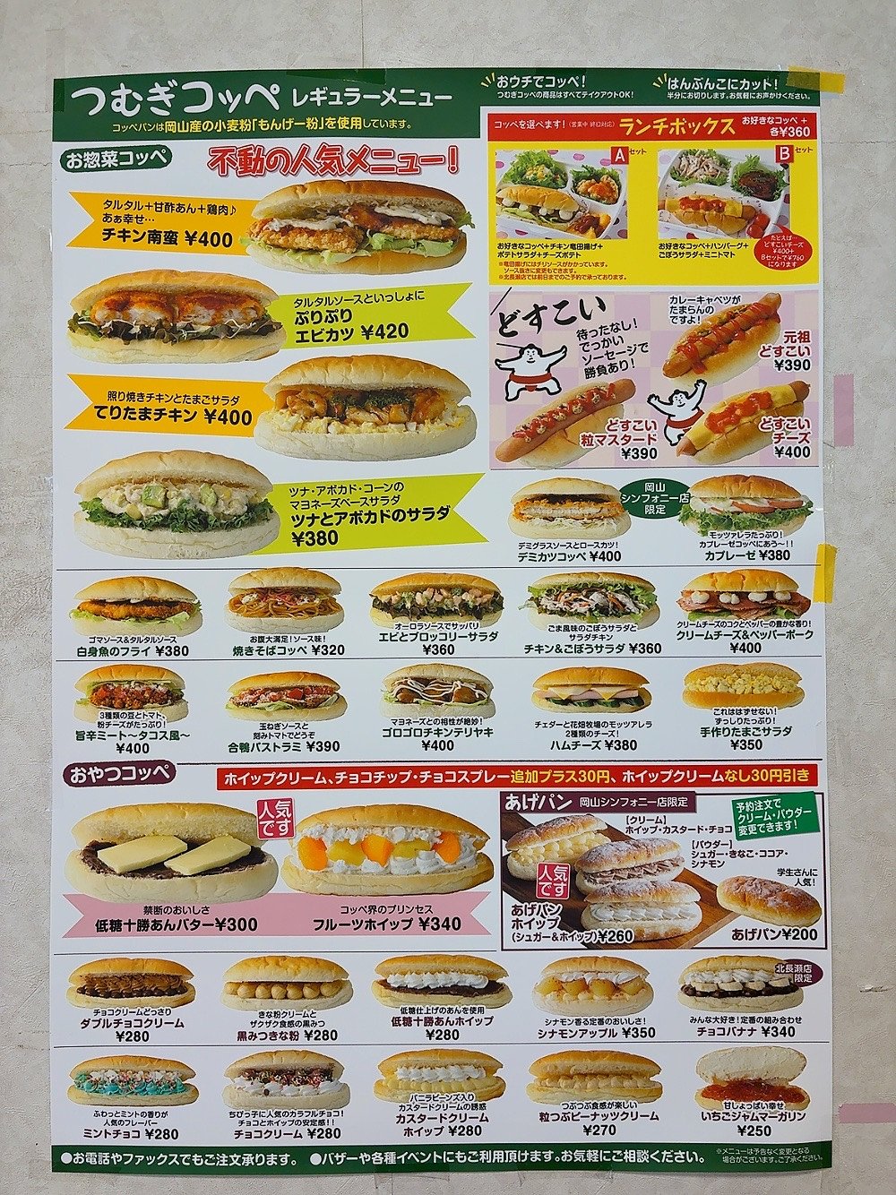 朝食は無くなっていたけど、岡山で人気のつむぎコッペという種類豊富で美味しいコッペパンが朝7時から1階で販売されます。