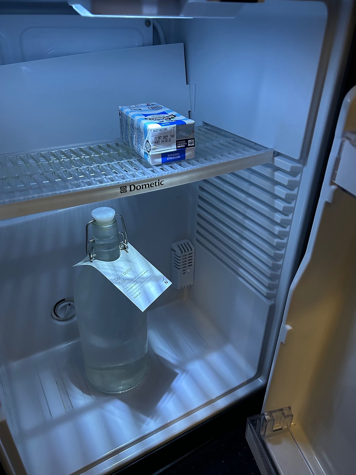 There were plenty of coffee and tea options, and for some reason, there was a pack of milk in the fridge.