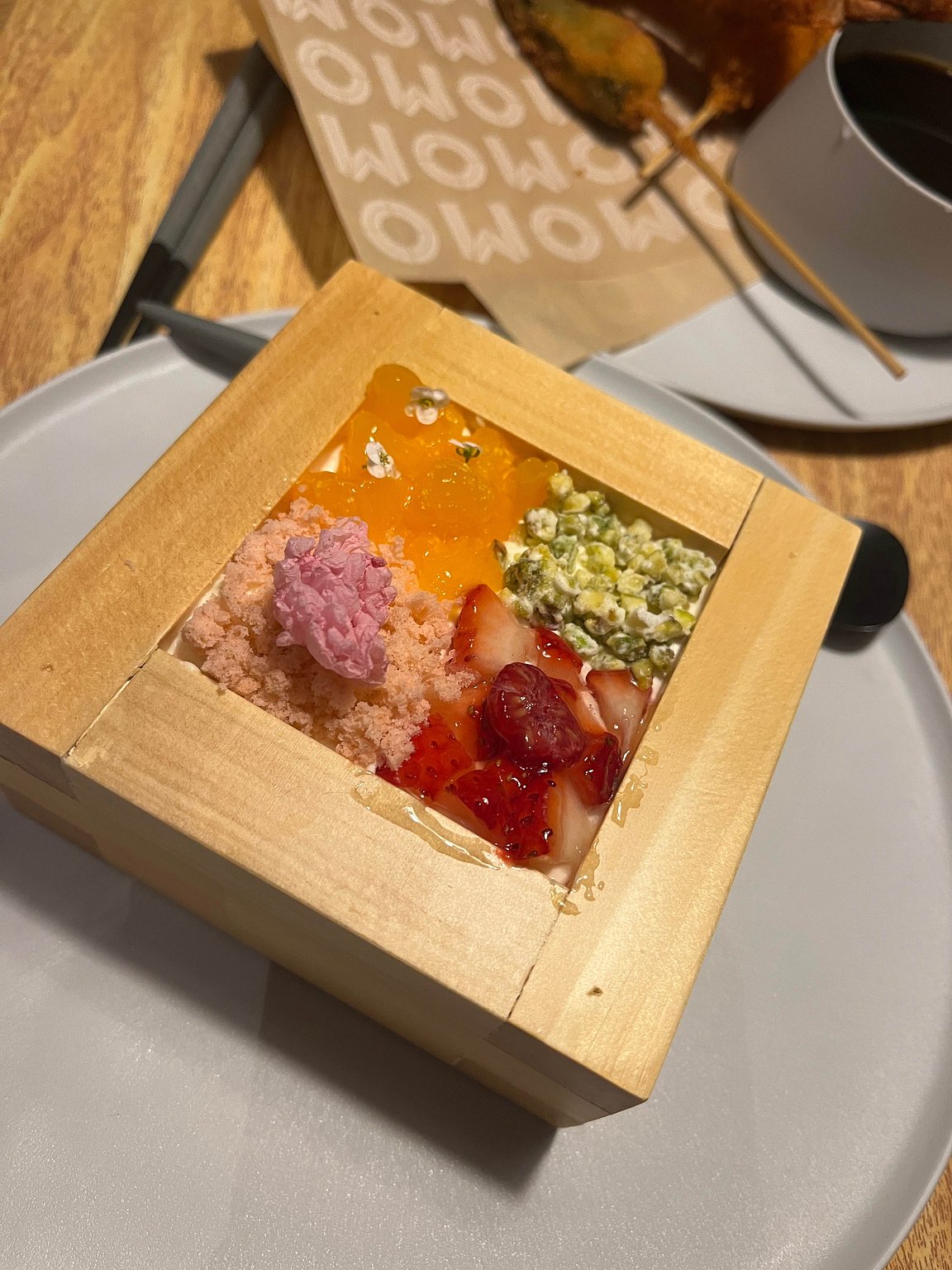 I experienced afternoon dashi at the hotel. I had the chance to shave katsuobushi and enjoyed various ingredients themed around dashi. The chocolate that looked like katsuobushi was quite interesting.