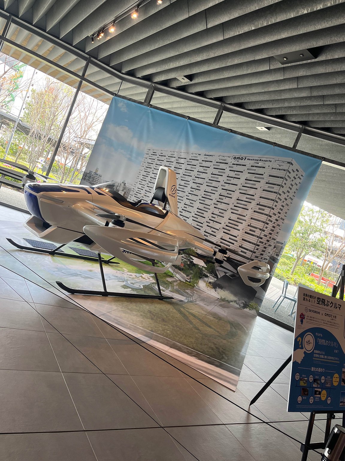 I stayed at omo7 Osaka three times in six months. It's my favorite hotel. The wide lawn makes the kids want to run around, and they look like they're having a lot of fun. My purpose for visiting omo is simply to spend time at the hotel, so I enjoyed soaking in the onsen, having dinner at the café, participating in indoor activities, and at night, takoyaki and beer. Since it was cherry blossom season, there was champagne as well. With the upcoming world expo, there was a display of flying cars. It was a short time, but there was also a time to ride and take commemorative photos. I didn't go sightseeing outside of the hotel, so I completely enjoyed my stay at the hotel.