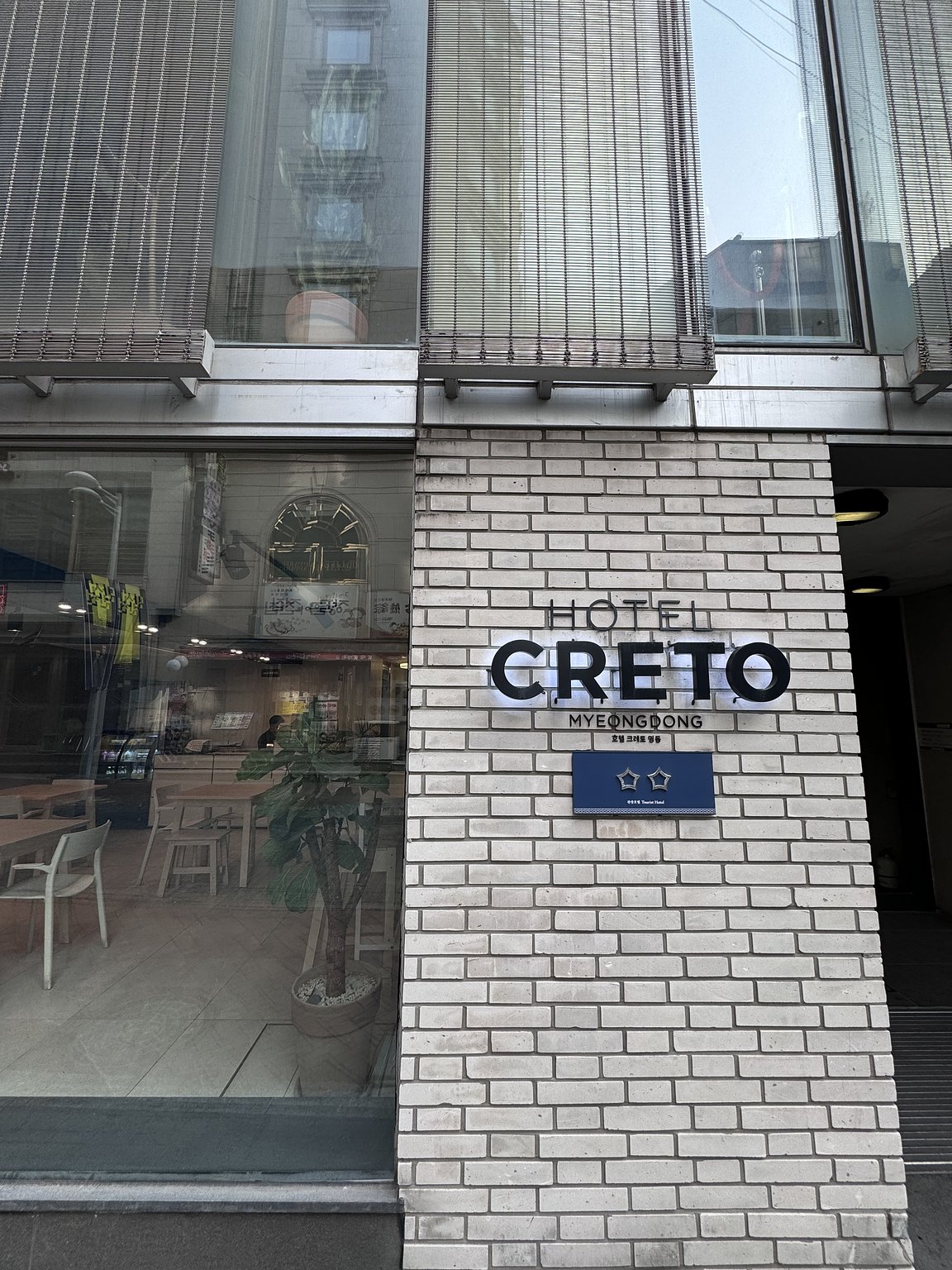 ■ 주변 정보 호텔 크레토 명동은 서울의 중심 명동에 위치해 있으며, 명동역 10번 출구에서 도보 약 2분 거리입니다. 명동 쇼핑거리, 명동성당, 남대문시장 등 주요 관광지에 쉽게 접근할 수 있습니다. 공항버스와 지하철 이용이 편리해 비즈니스와 관광객 모두에게 이상적인 위치를 자랑합니다. ■ 시설 정보 호텔은 24시간 프런트 데스크, 무료 Wi-Fi, 엘리베이터 등 편의시설을 갖추고 있습니다. 2층에는 독립된 넓은 로비가 마련되어 있어 투숙객이 쾌적한 휴식을 즐길 수 있습니다. 루프탑 테라스와 카페가 있어 도심 속에서도 여유로운 시간을 보낼 수 있습니다. ■ 객실 정보 모던하고 깔끔한 인테리어의 더블룸, 트윈룸, 패밀리룸 등 다양한 객실을 보유하고 있습니다. 모든 객실에는 에어컨, 평면 TV(넷플릭스 지원), 냉장고, 무료 Wi-Fi가 구비되어 있습니다. 일부 객실에는 욕조가 마련되어 있으며, 모든 객실은 금연 구역으로 운영됩니다. ■ 식사 정보 (별도 요금) 1층 카페에서 커피와 간단한 스낵을 이용할 수 있습니다. 조식은 추가 요금 (8,000원) 결제 시 이용 가능합니다. ■ 주의 사항 기타 시설이나 서비스에 대해서는 호텔 공식 웹사이트를 방문하거나 호텔로 직접 문의하시기 바랍니다.객실 타입