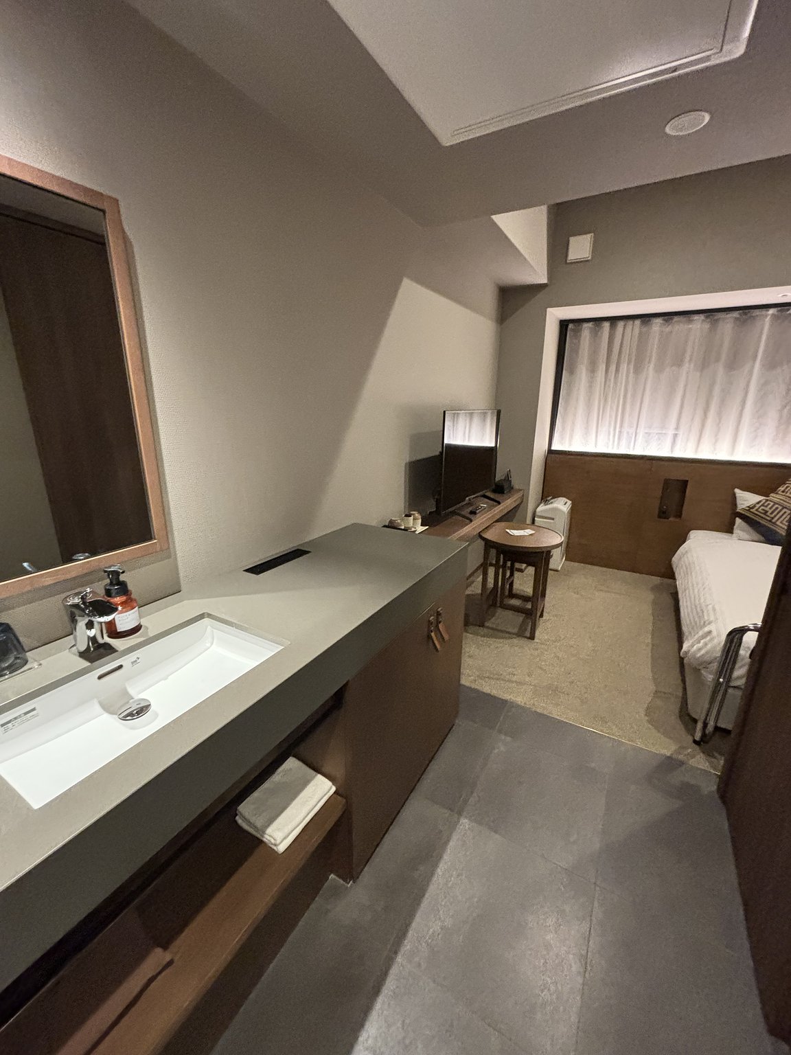 세면대가 밖에 있다는 새로운 체험이 정말 좋았습니다! 방에 들어갈 필요가 없어서 좋았습니다!