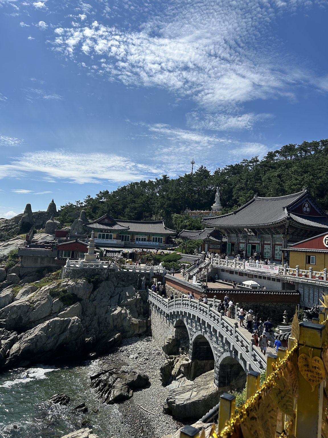호텔에서 택시로 약 20분 거리에 해동용궁사가 있습니다. 호텔 근처의 해변을 산책하고 전통시장에서 먹거리를 즐겼습니다.