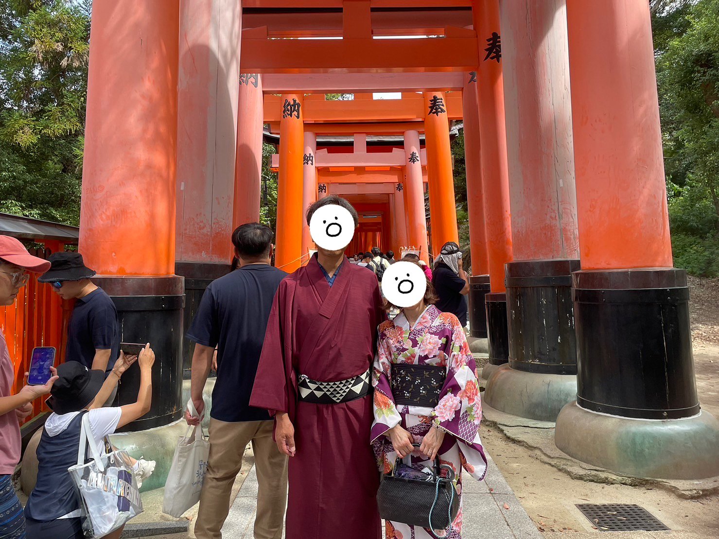 기모노를 대여하여 기모노를 입고 교토를 관광했습니다. 더웠지만 평소에 할 수 없는 일이어서 정말 즐거웠어요!