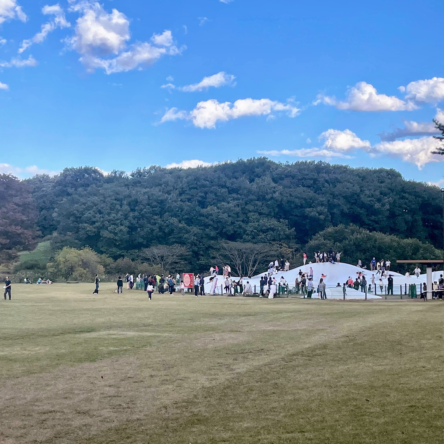 이번 숙박은 숲 공원에서의 할로윈 나이트를 위한 것이었습니다. 낮부터 가서 초대형 푹신한 돔에서도 놀았습니다.