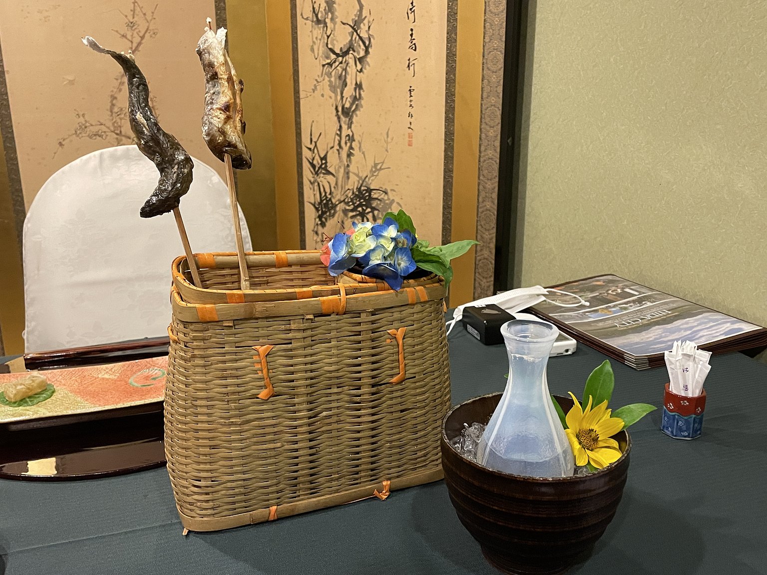 개인실에서 지역 재료와 계절 장식으로 배도 마음도 모두 채워졌습니다.