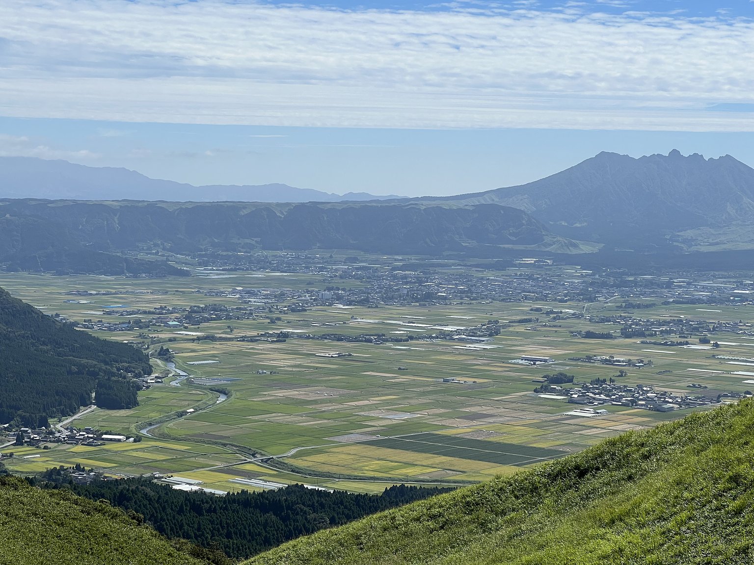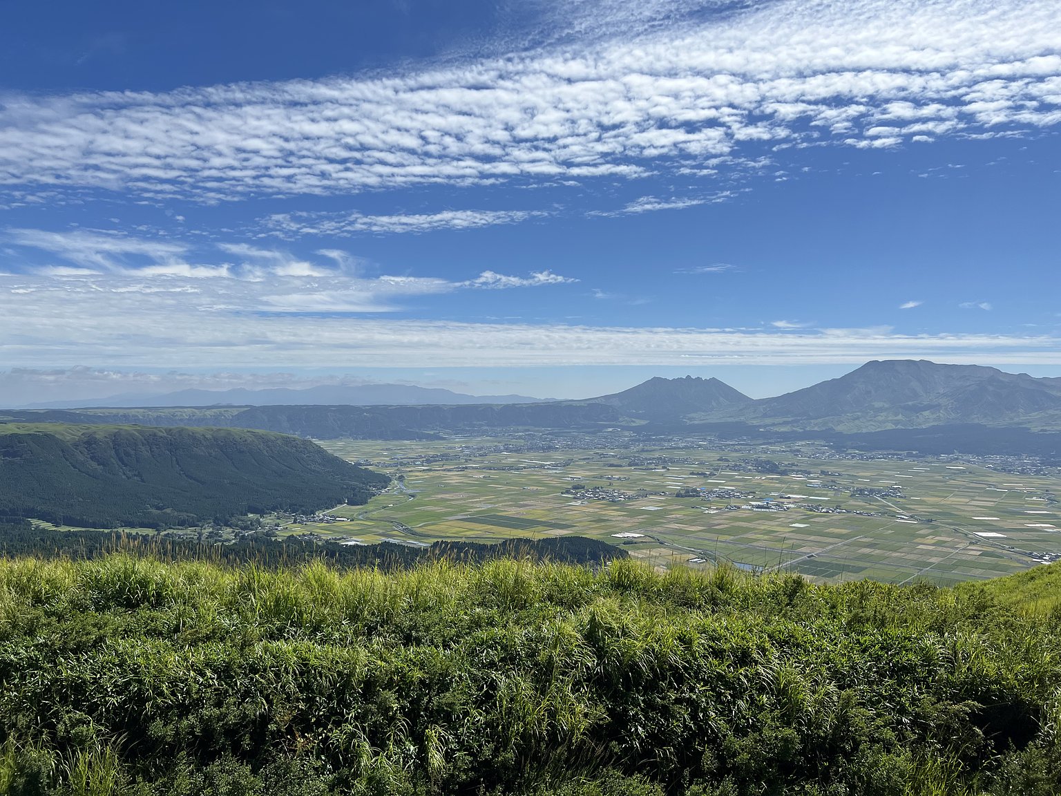 맑은 날 아소산의 대관봉에서 바라보는 경치는 최상이었습니다.