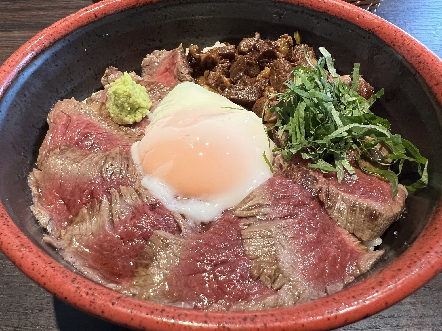 점심에는 아소의 아카우소로 만든 아카우소돈을 먹었는데 이 또한 맛있습니다.