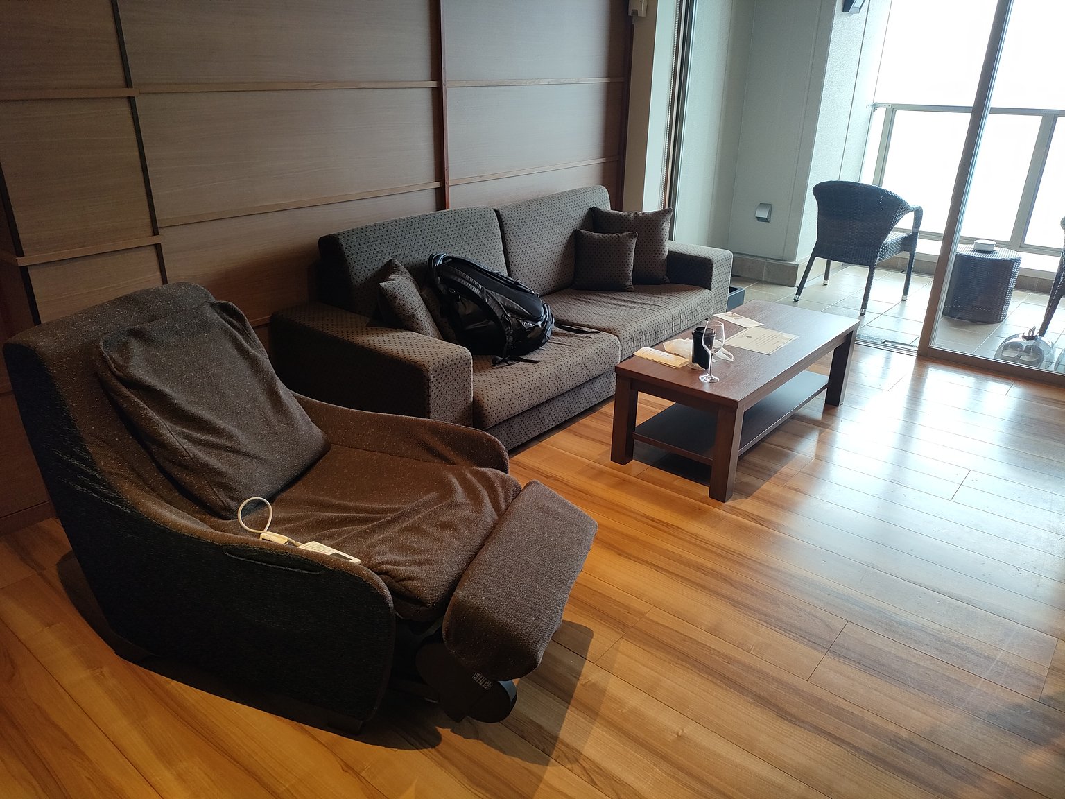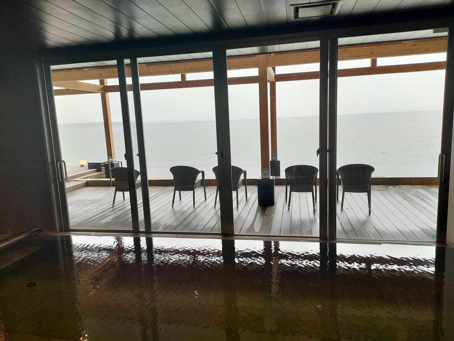 방에는 엄선된 온천수가 24시간 들어가는 노천탕이 있어서 벳푸만을 바라보며 우아하게 쉴 수 있었습니다. 방에는 마사지 의자도 있어서 여행의 피로를 풀기에 최고입니다. 대욕장은 태풍의 영향으로 숙박객이 적어서 혼자 사용할 수 있었지만 벳푸만을 보면서의 노천탕과 자쿠지는 최고의 순간입니다.