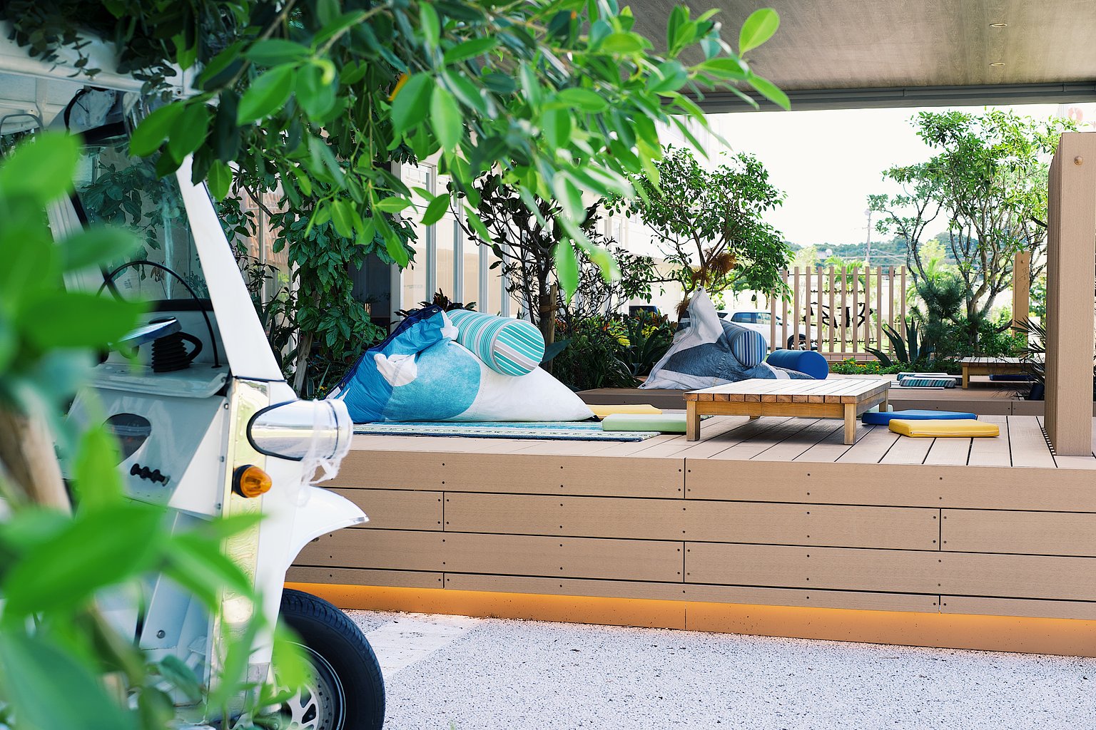 ④호텔 근처에 있는 해변에는 뚝뚝(트럭)으로 보내주시는 서비스도 있어 이동도 편안합니다. 해변까지의 이동이 쉽고 재미라는 것도 오키나와 리조트만의 매력입니다. 모래해변에 발을 내딛는 순간의 설렘감은 뚝뚝 이동이 더욱 후끈하게 해줍니다.